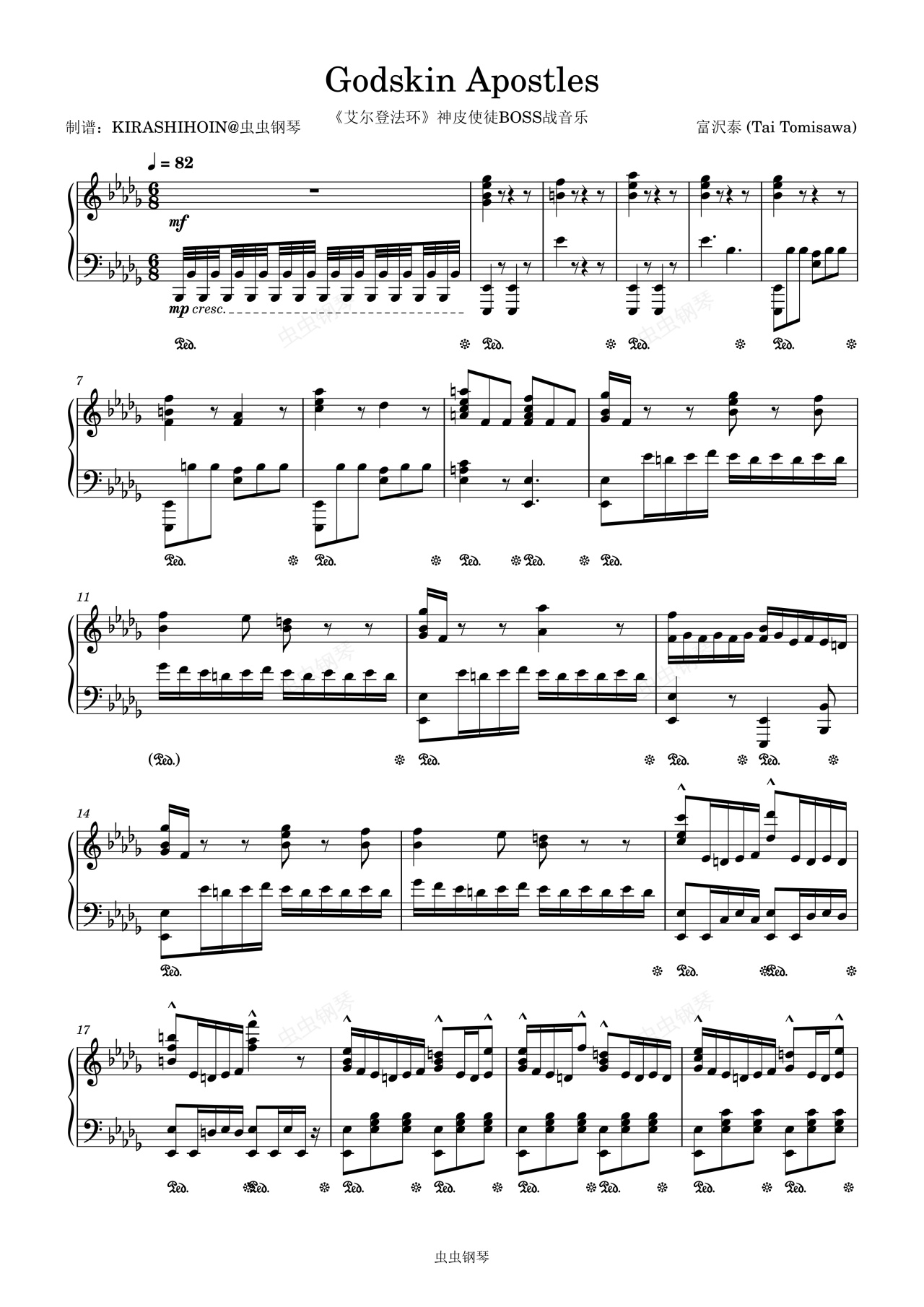 钢琴谱:神皮使徒/Godskin Apostles(《艾尔登法环》神皮使徒BOSS战音乐)- 富沢泰