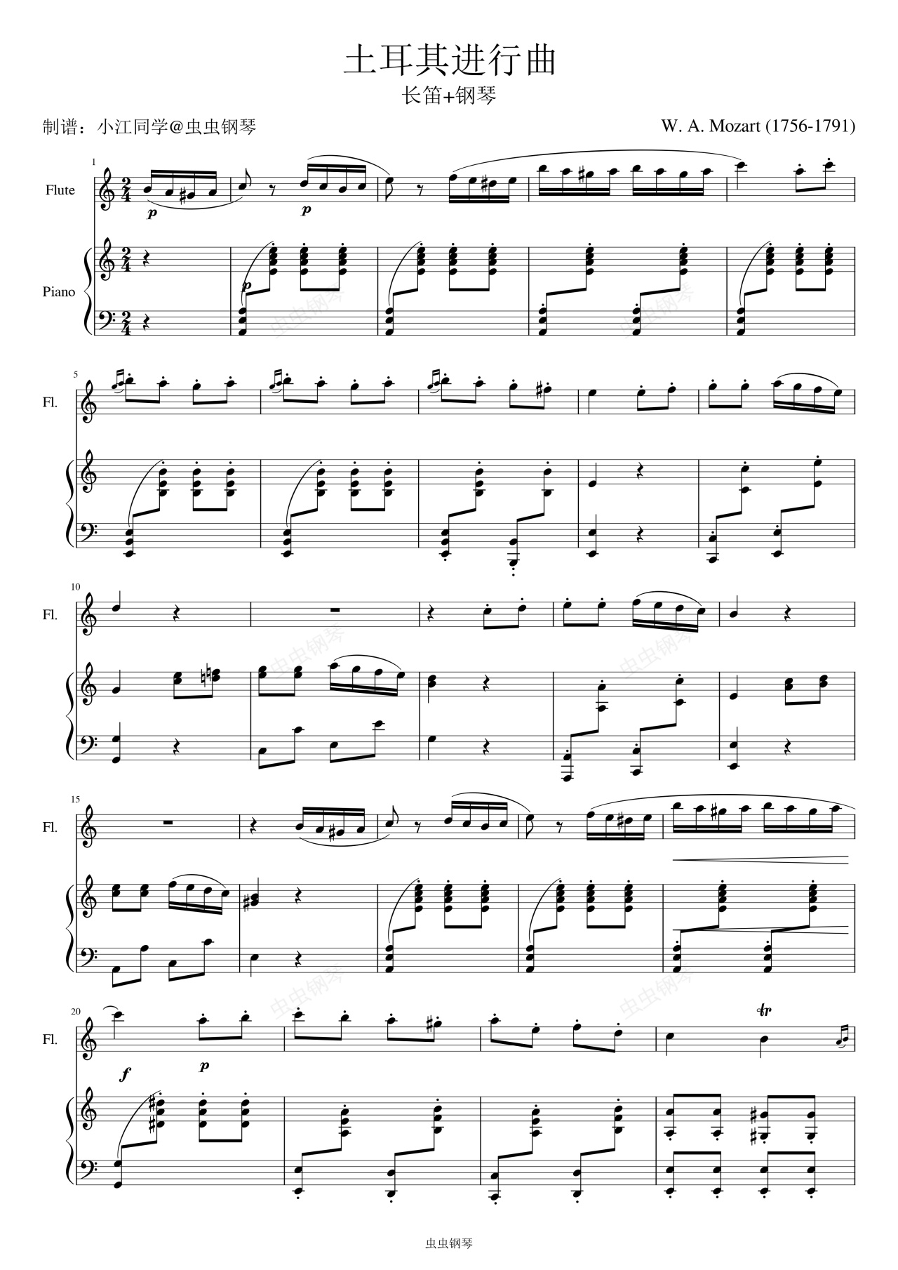 钢琴谱:土耳其进行曲 长笛+钢琴