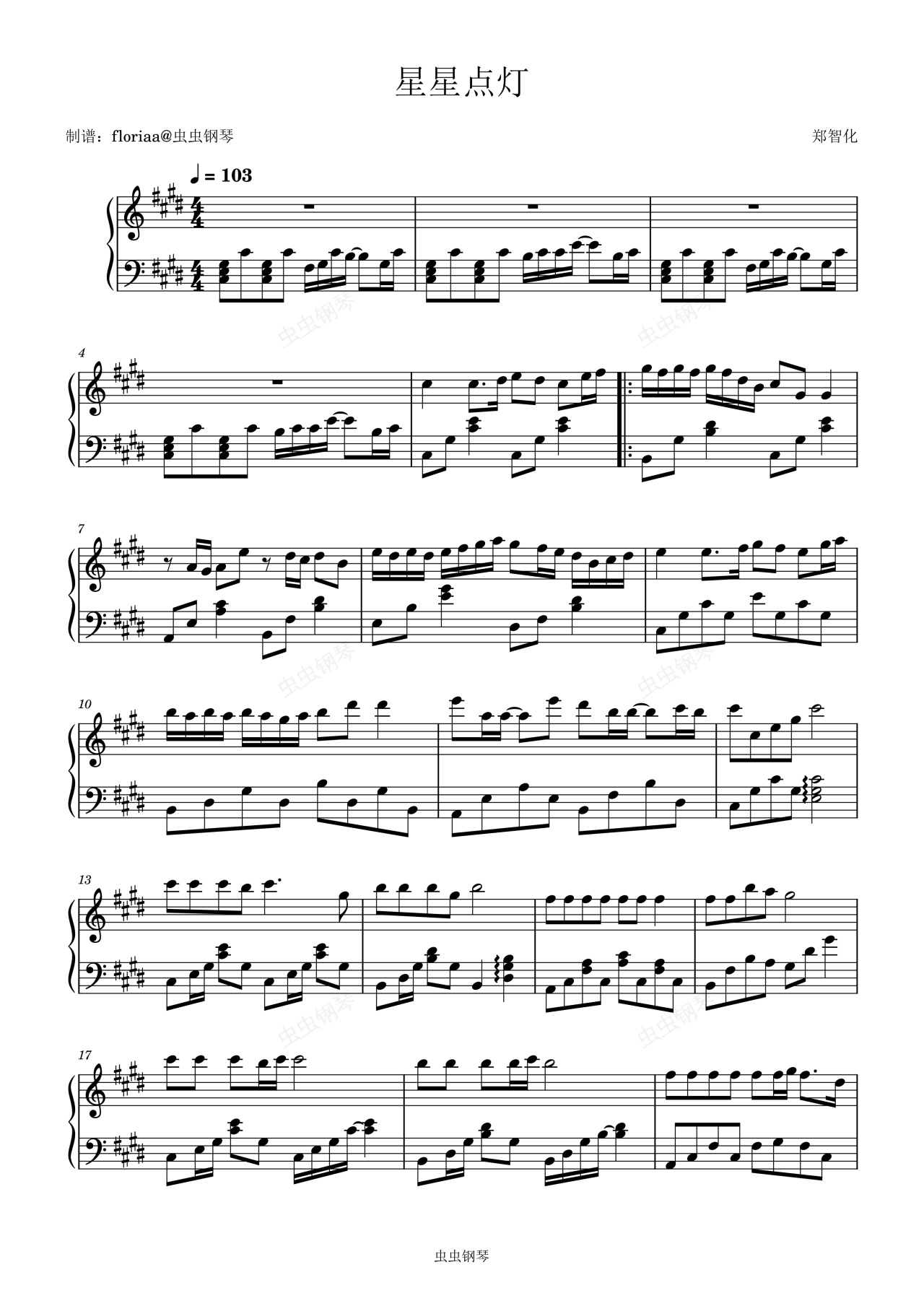 钢琴谱:星星点灯-原调独奏
