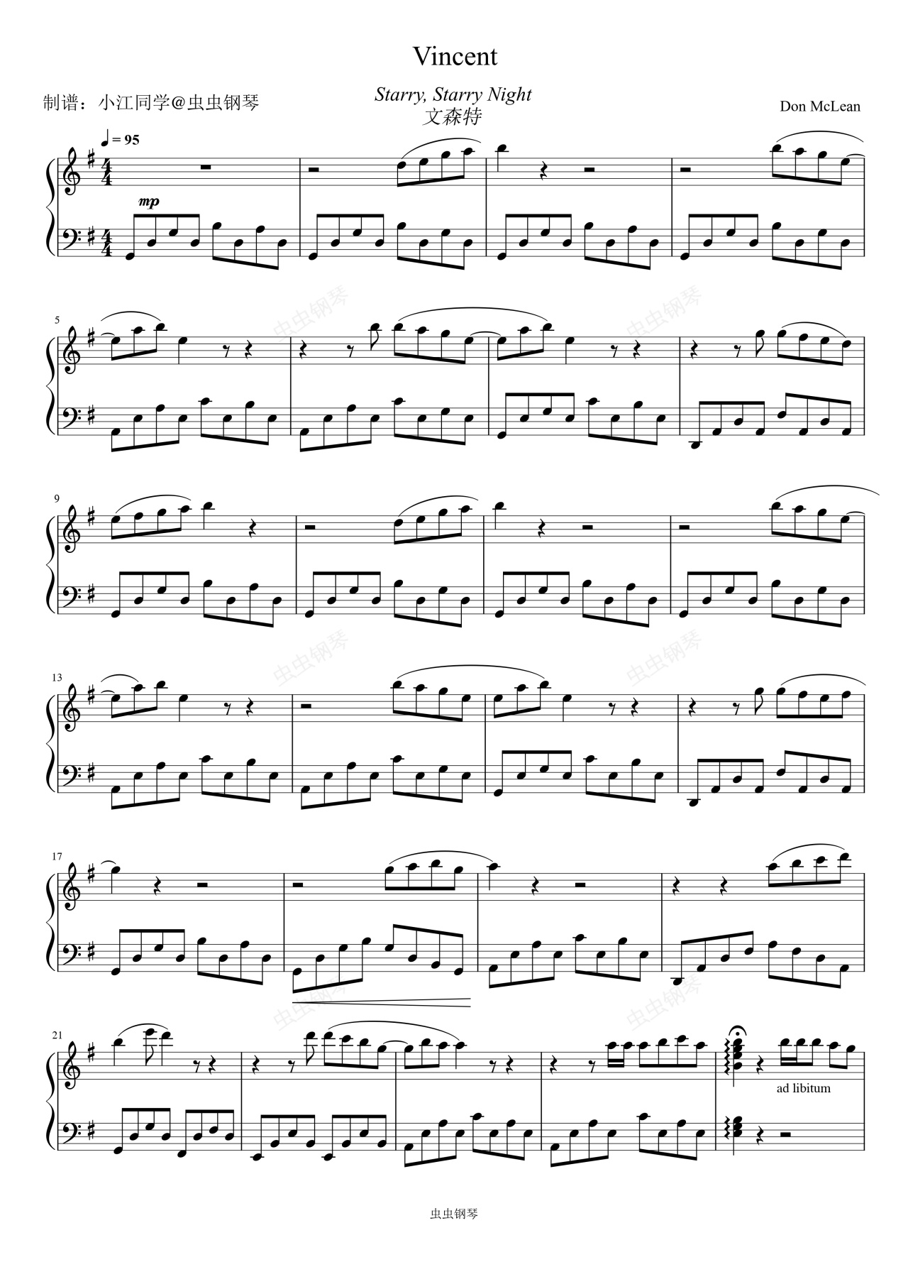 钢琴谱:Vincent 文森特