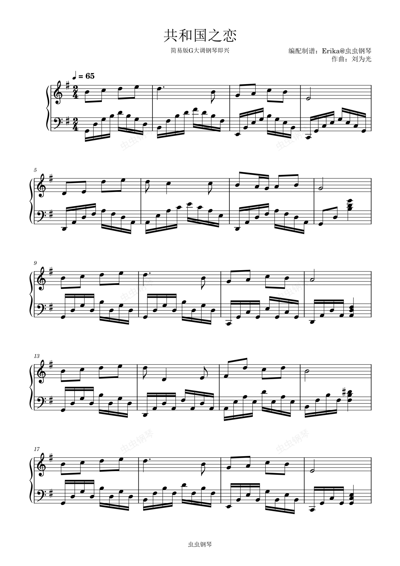 钢琴谱:共和国之恋-G调钢琴即兴简易版