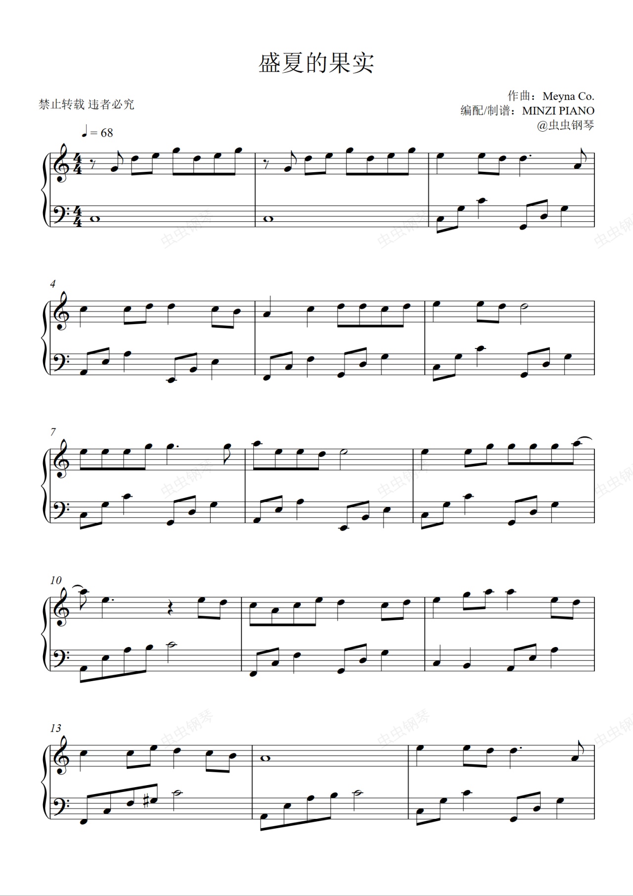 钢琴谱:莫文蔚《盛夏的果实》好听易弹