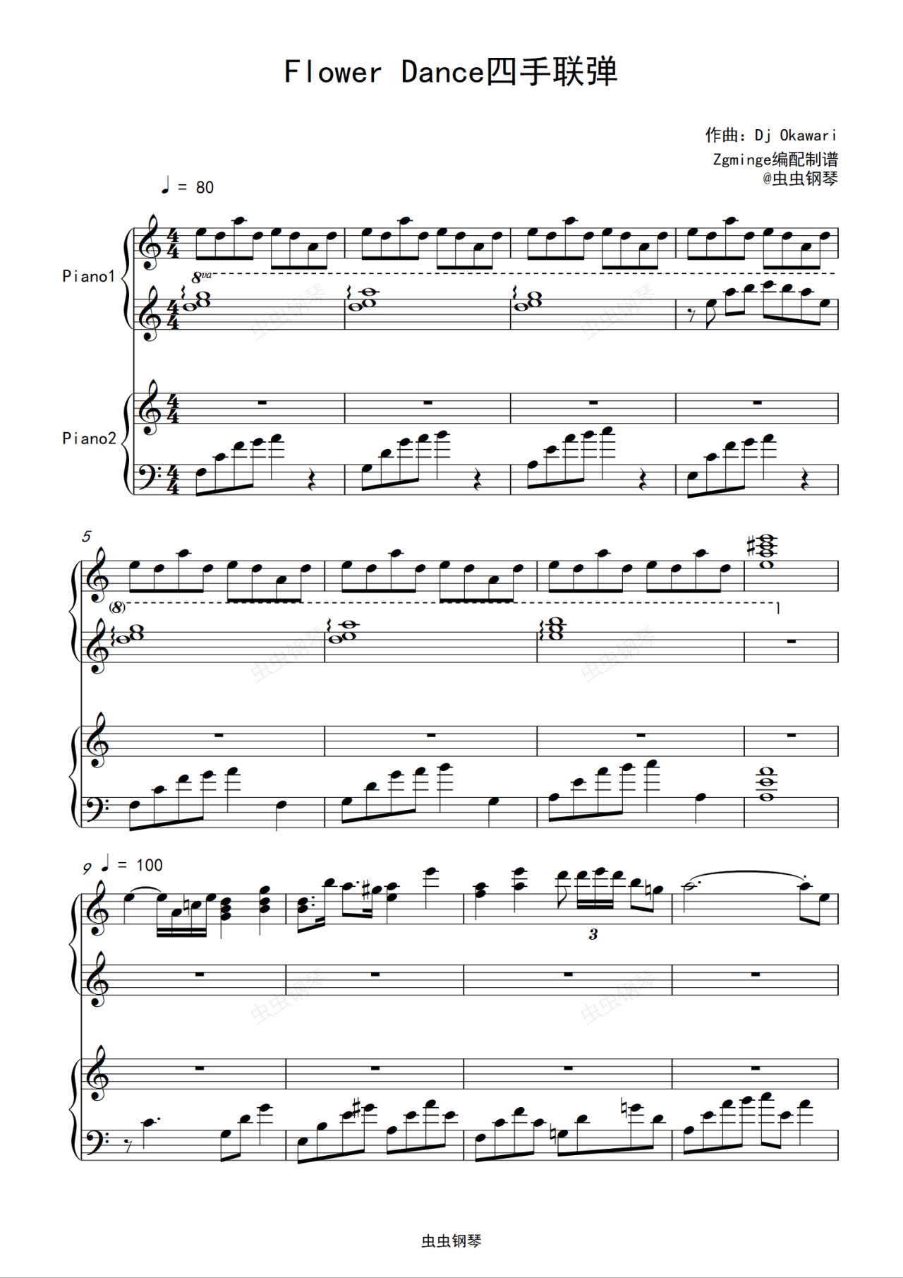 钢琴谱:Flower Dance 精编四手联弹 C调