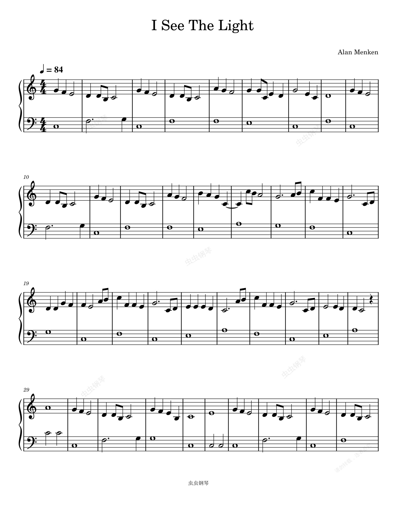钢琴谱:魔发奇缘 动画电影 I See The Light