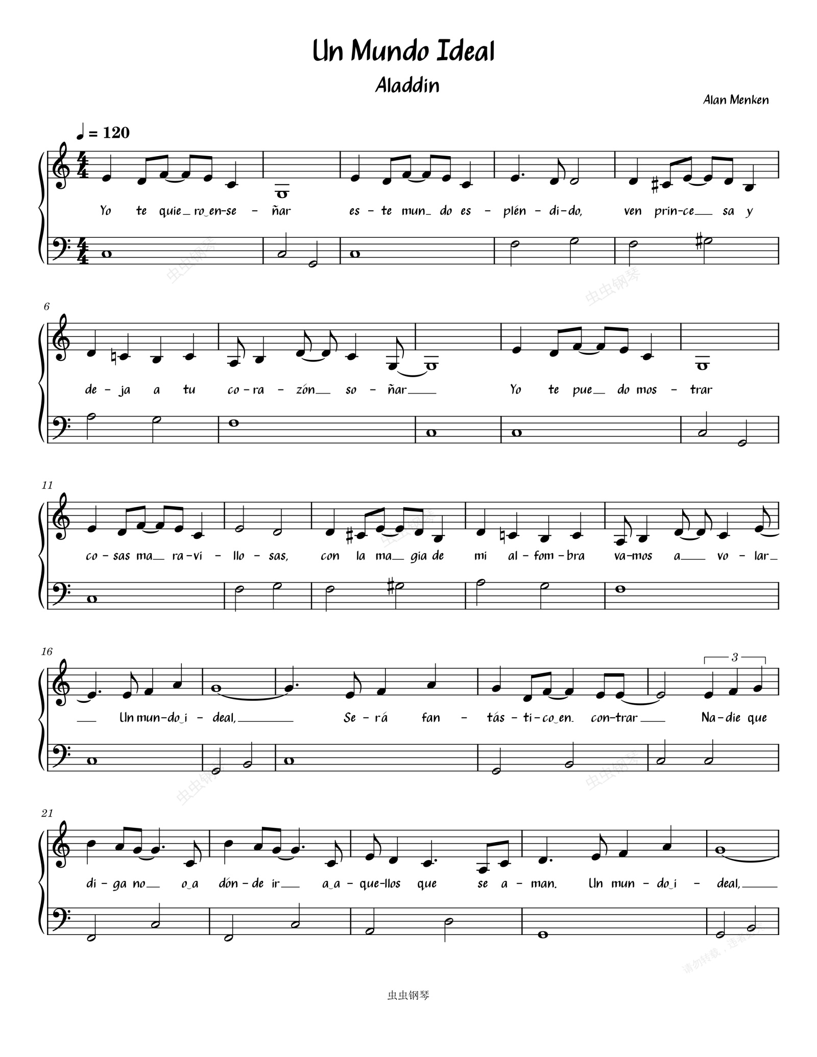 钢琴谱:阿拉丁 动画电影 Un Mundo Ideal