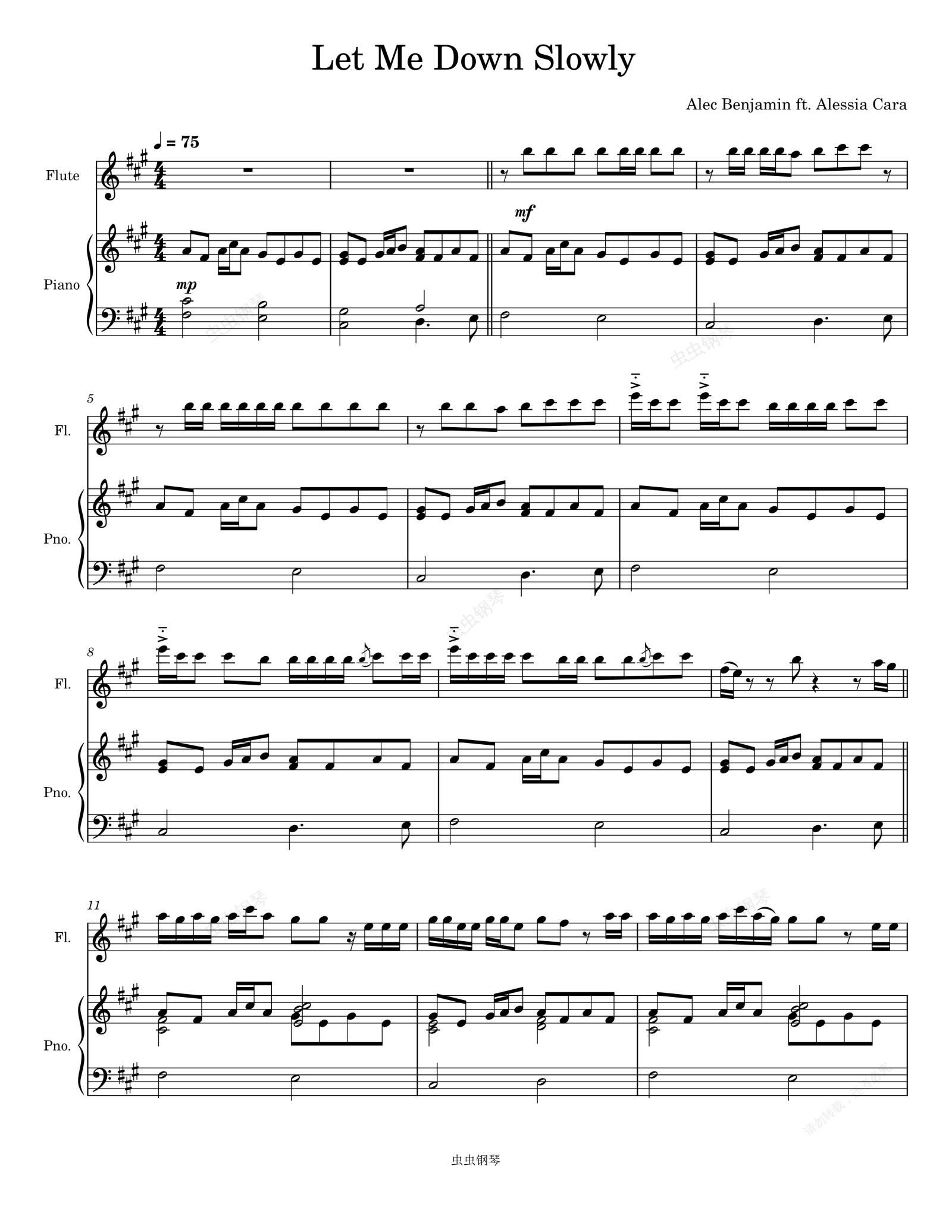 钢琴谱:Let Me Down Slowly-Alec Benjamin/Alessia Cara