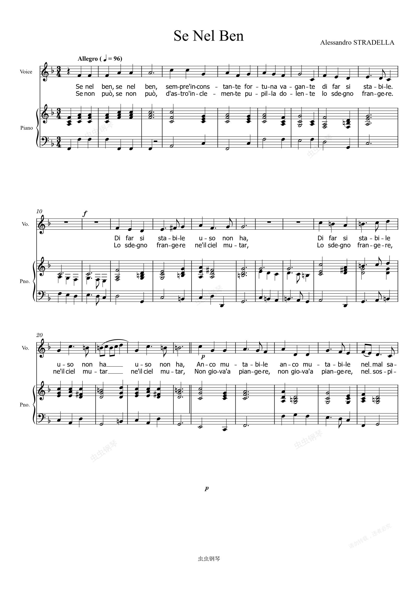 钢琴谱:Se Nel Ben-Alessandro STRADELLA