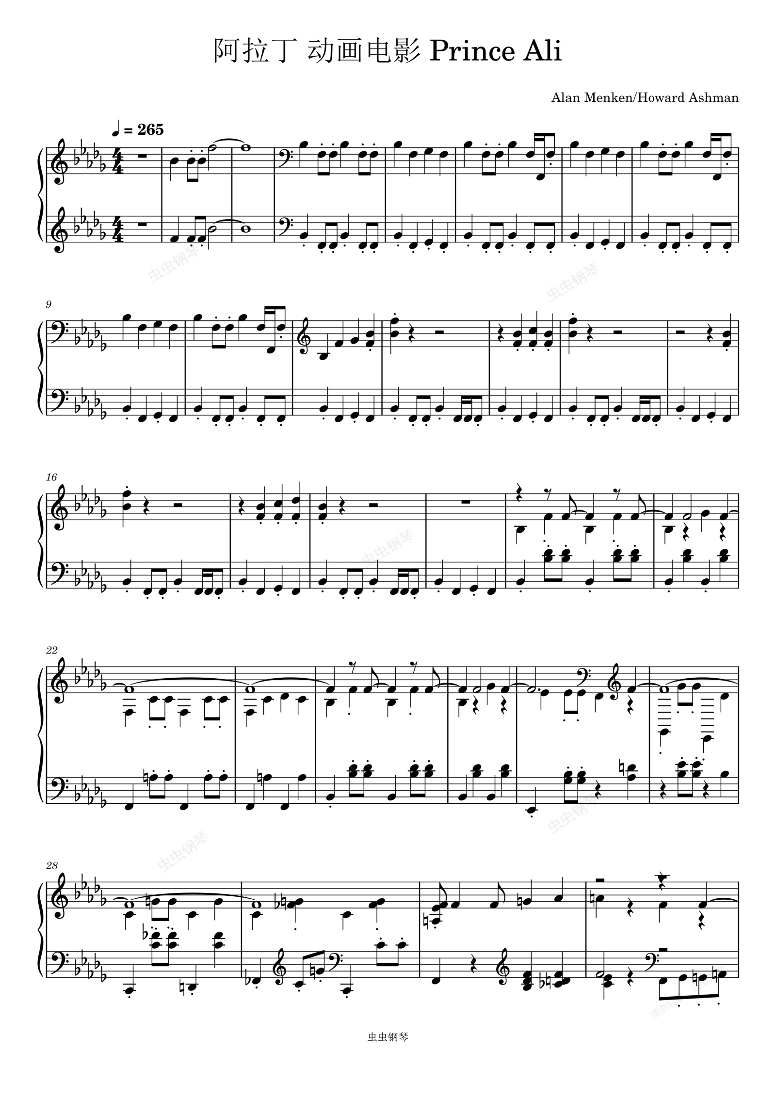 钢琴谱:阿拉丁 动画电影 Prince Ali