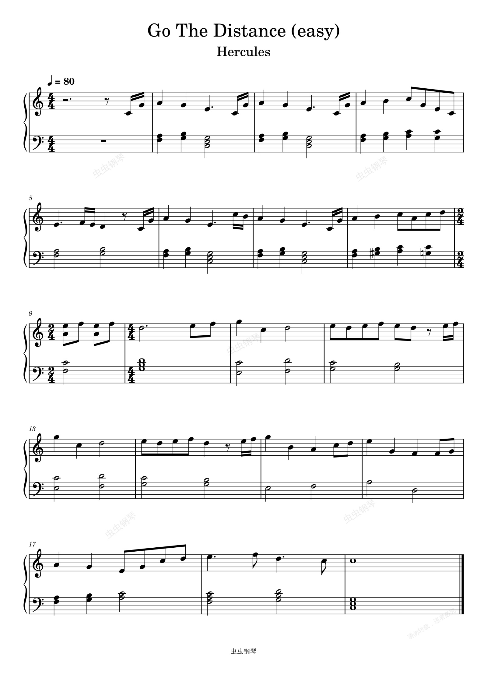 钢琴谱:大力士 动画电影 Go The Distance (easy)