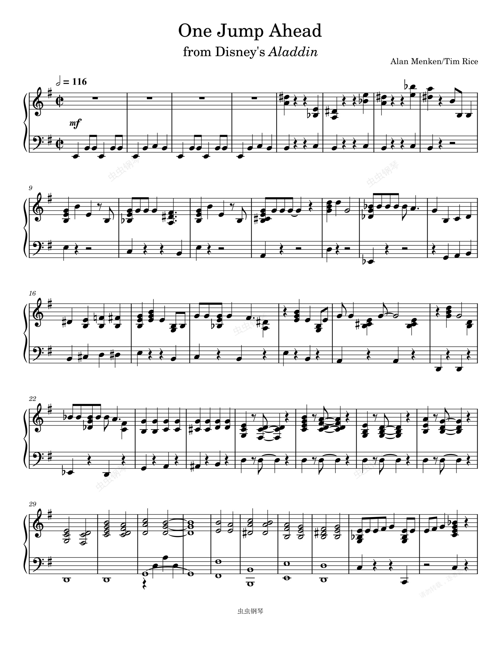 钢琴谱:阿拉丁 动画电影-One Jump Ahead