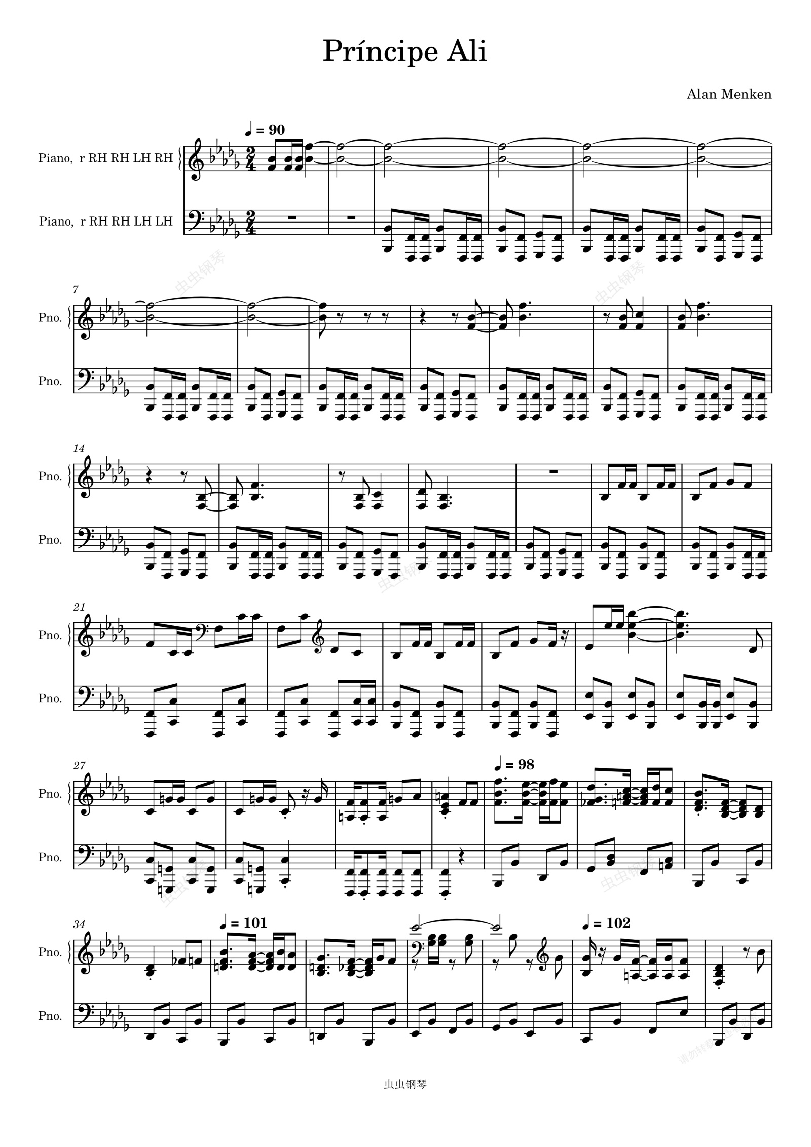 钢琴谱:阿拉丁 动画电影 Príncipe Ali - Alan Menken