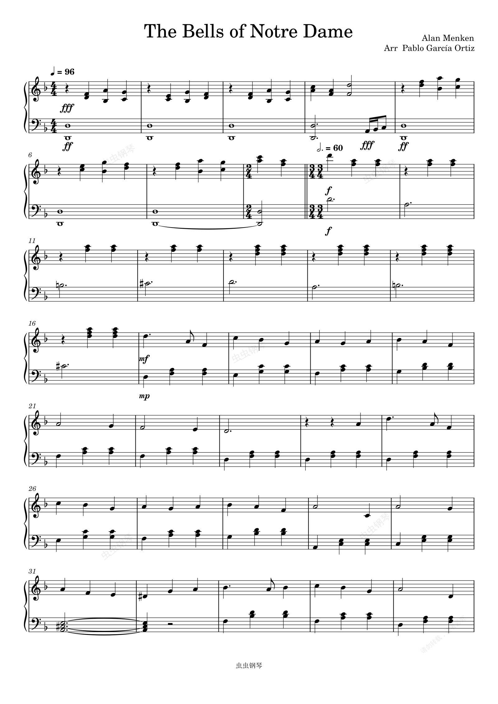钢琴谱:钟楼怪人 电影 The Bells of Notre Dame-Paul Kandel