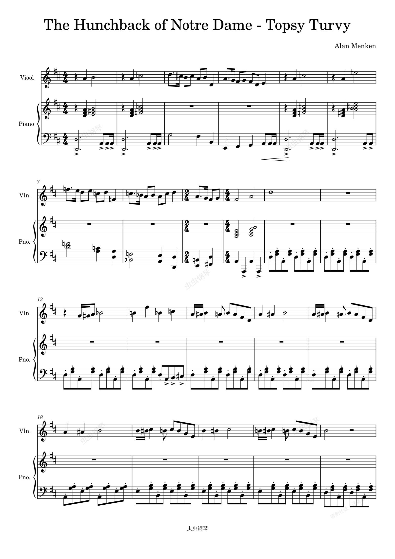钢琴谱:钟楼怪人 电影 The Hunchback of Notre Dame - Topsy Turvy