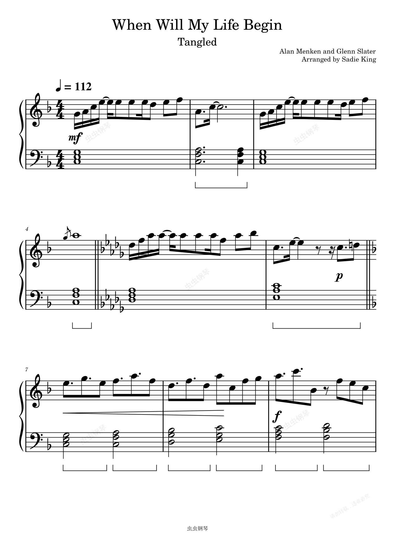 钢琴谱:魔发奇缘 动画电影 When Will My Life Begin