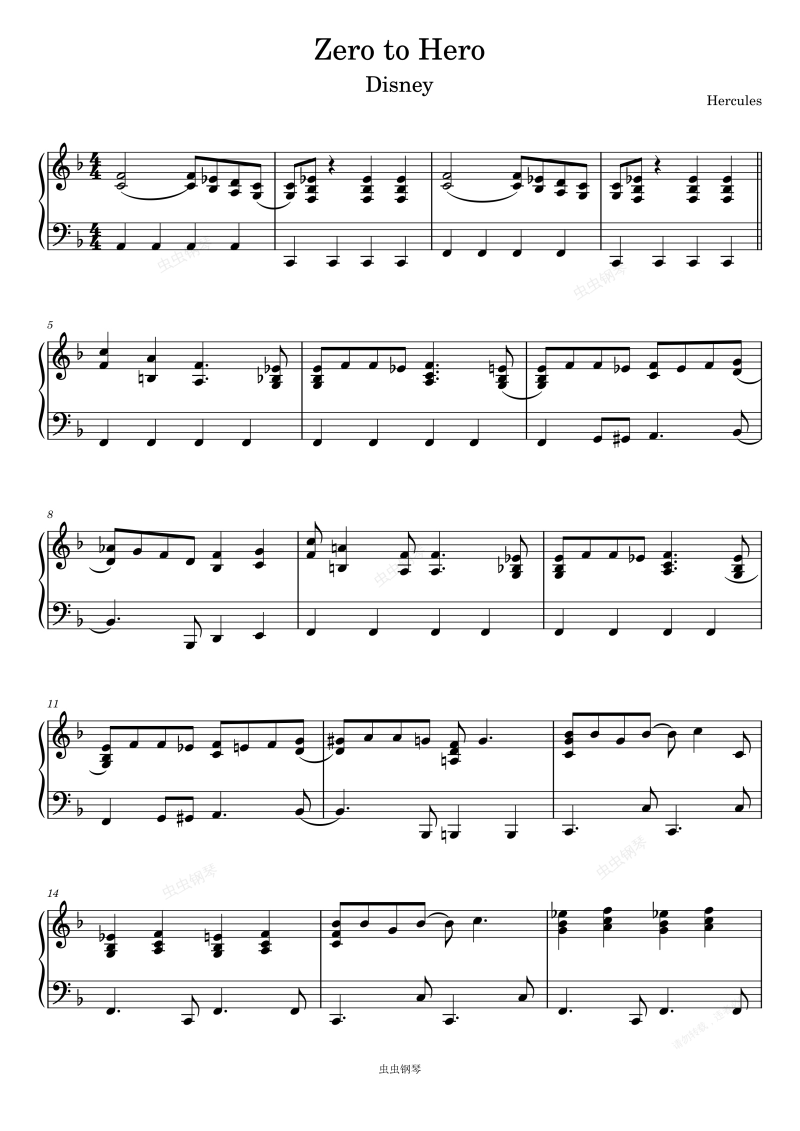 钢琴谱:大力士 动画电影 Zero to Hero -Alan Menken/David Zippel