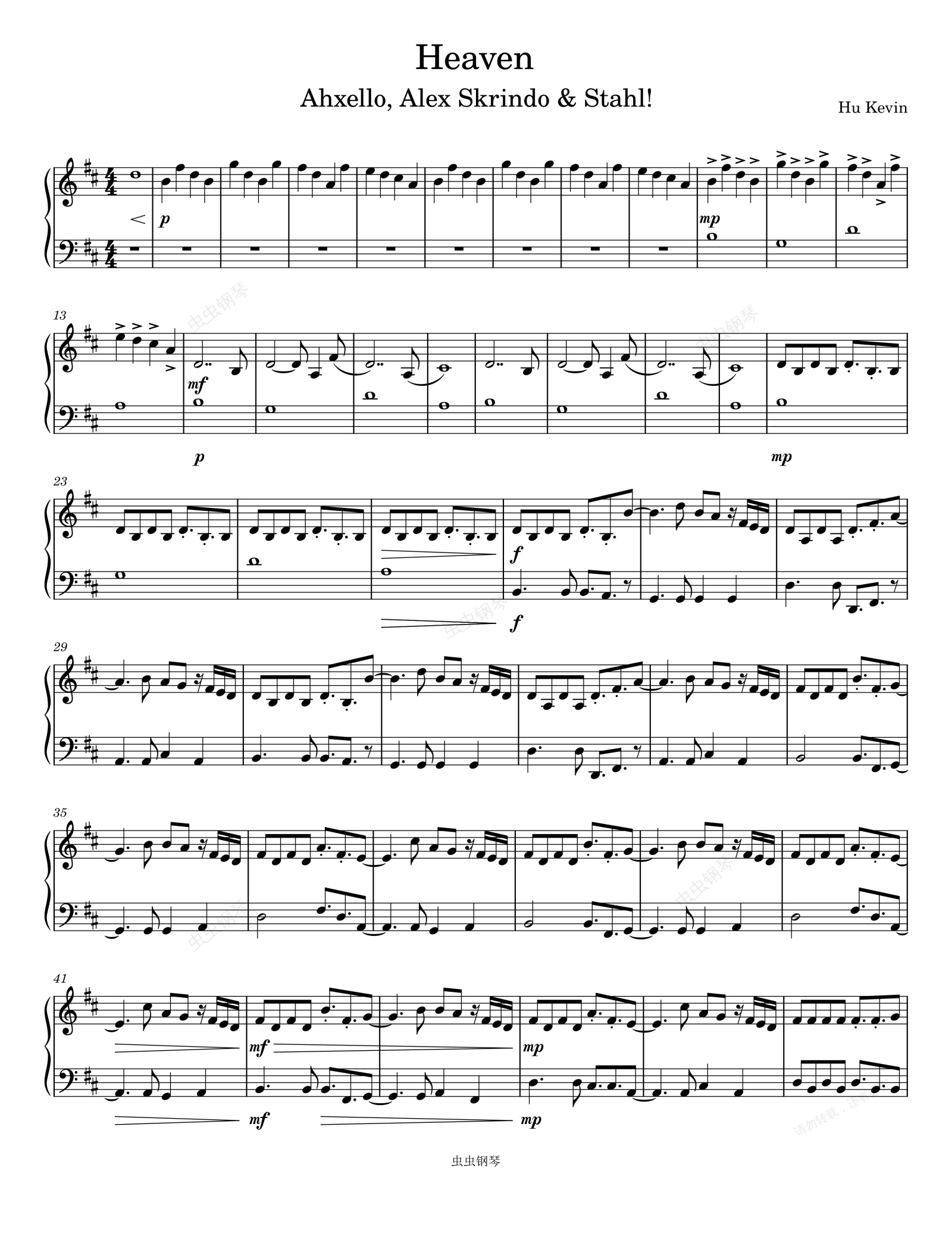 钢琴谱:Heaven- Ahxello/Alex Skrindo