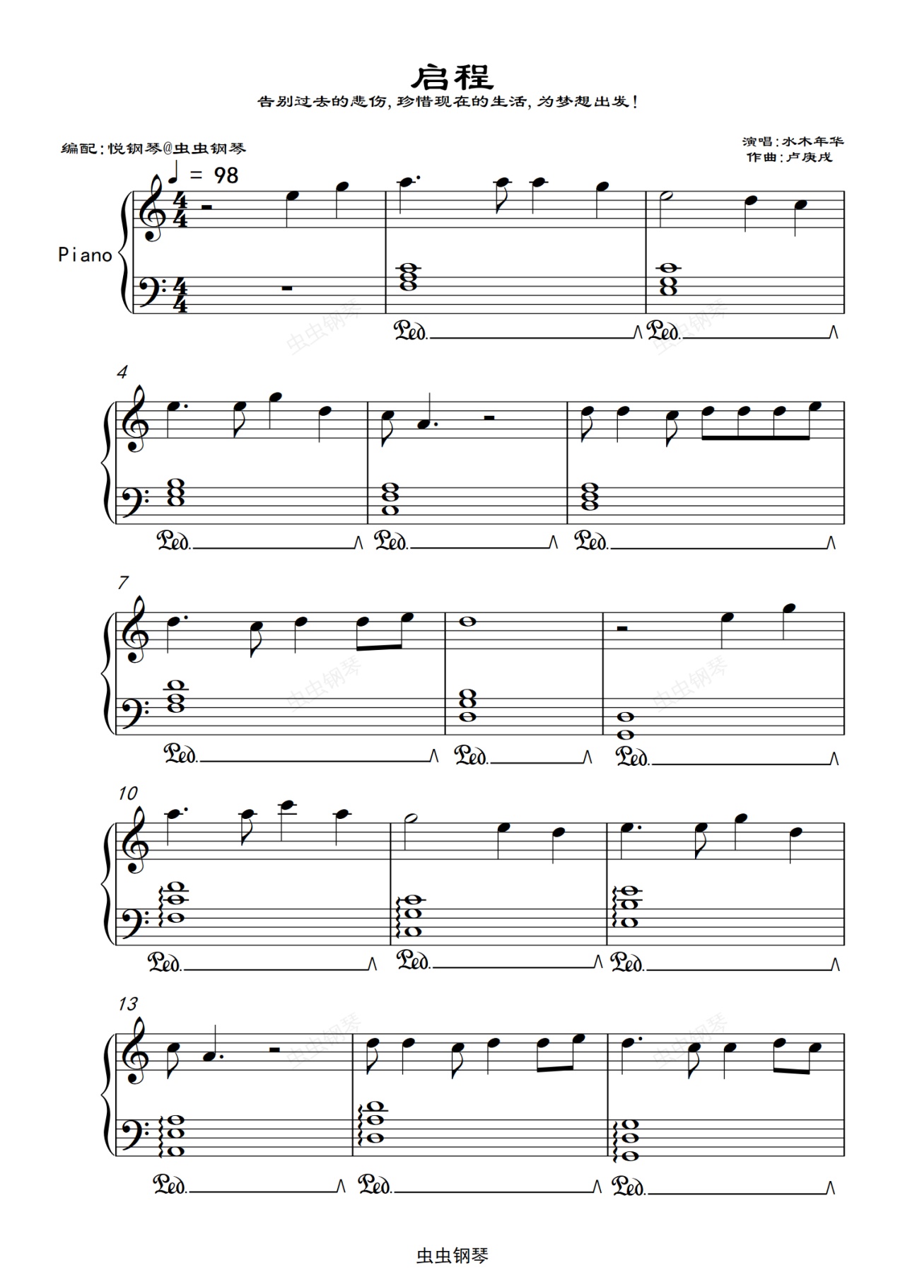 钢琴谱:启程(C调抒情版)水木年华
