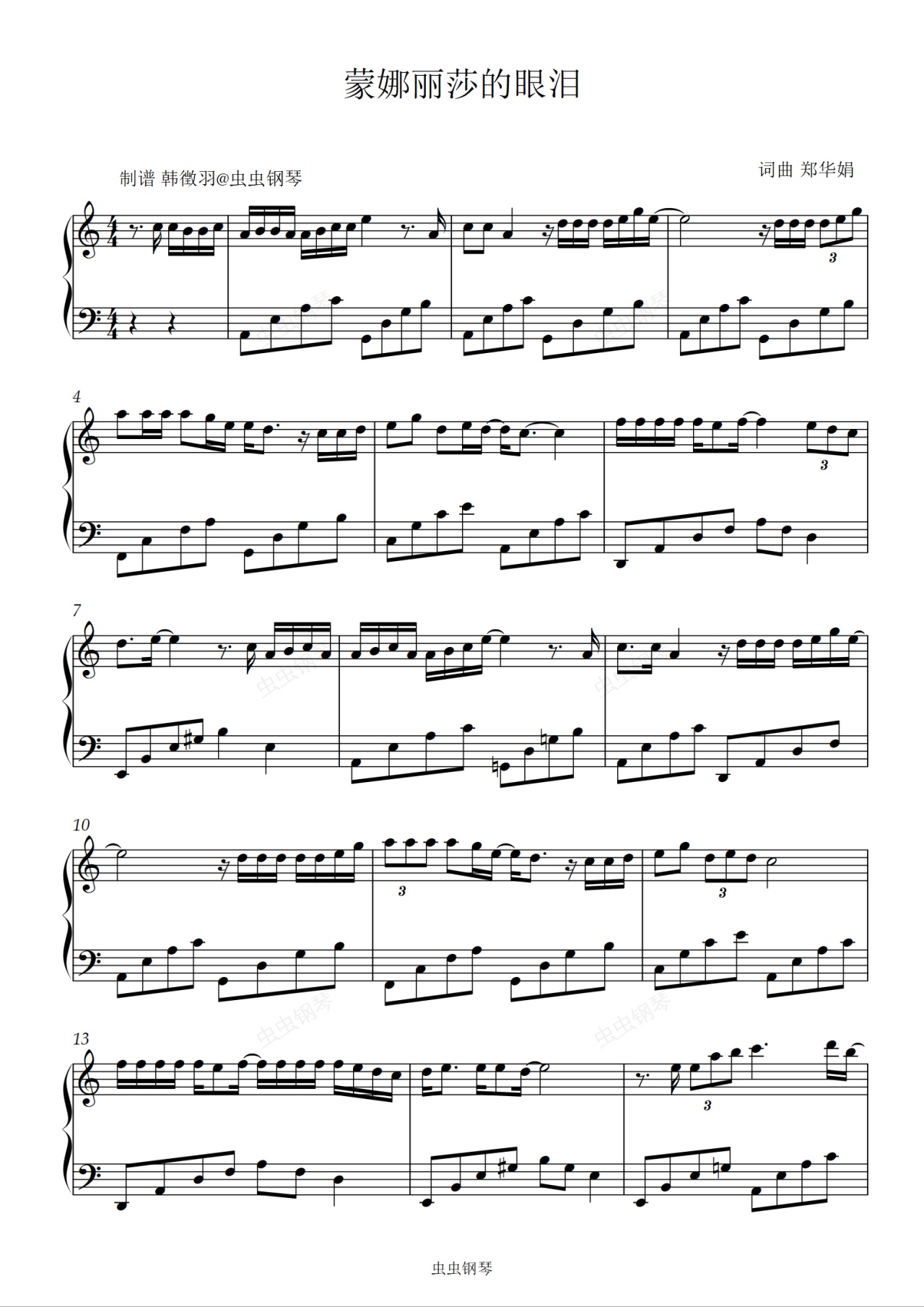 钢琴谱:蒙娜丽莎的眼泪