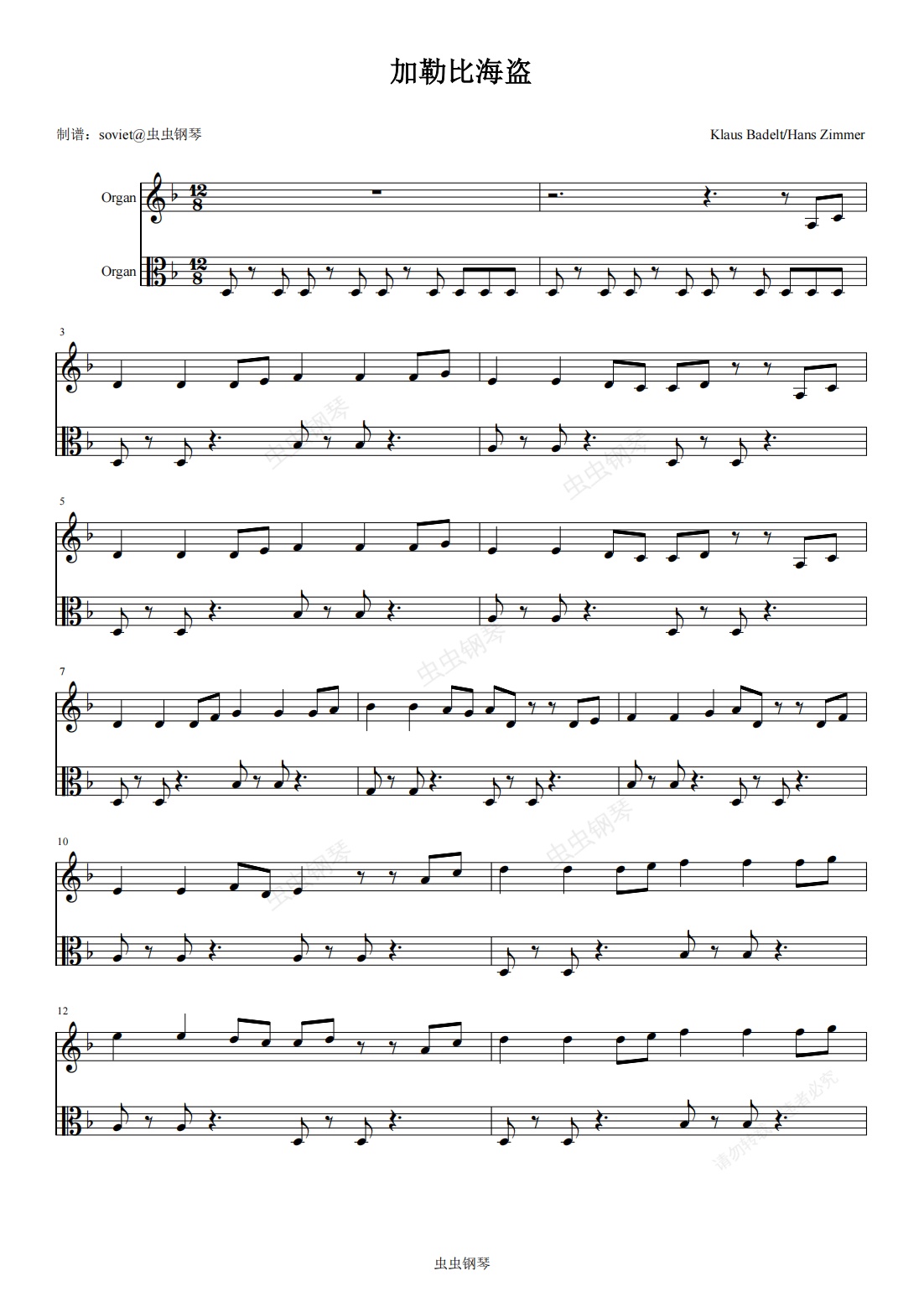 钢琴谱:加勒比海盗主题中小提重奏-He's A Pirate