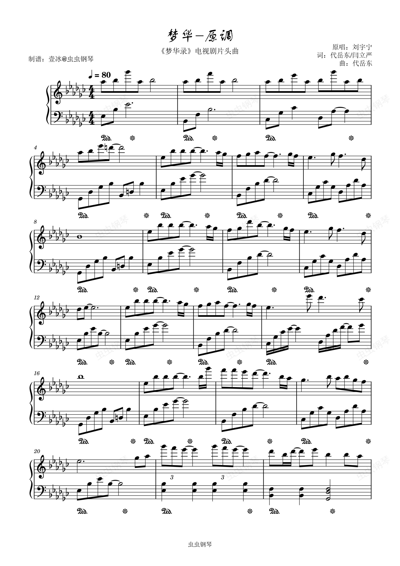 钢琴谱:梦华//《梦华录》电视剧片尾曲-原调版