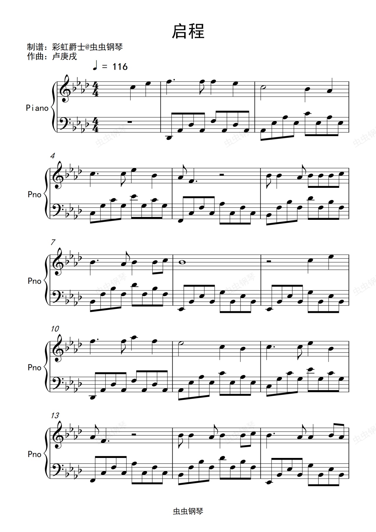 钢琴谱:启程  水木年华演唱歌曲  钢琴 完整版