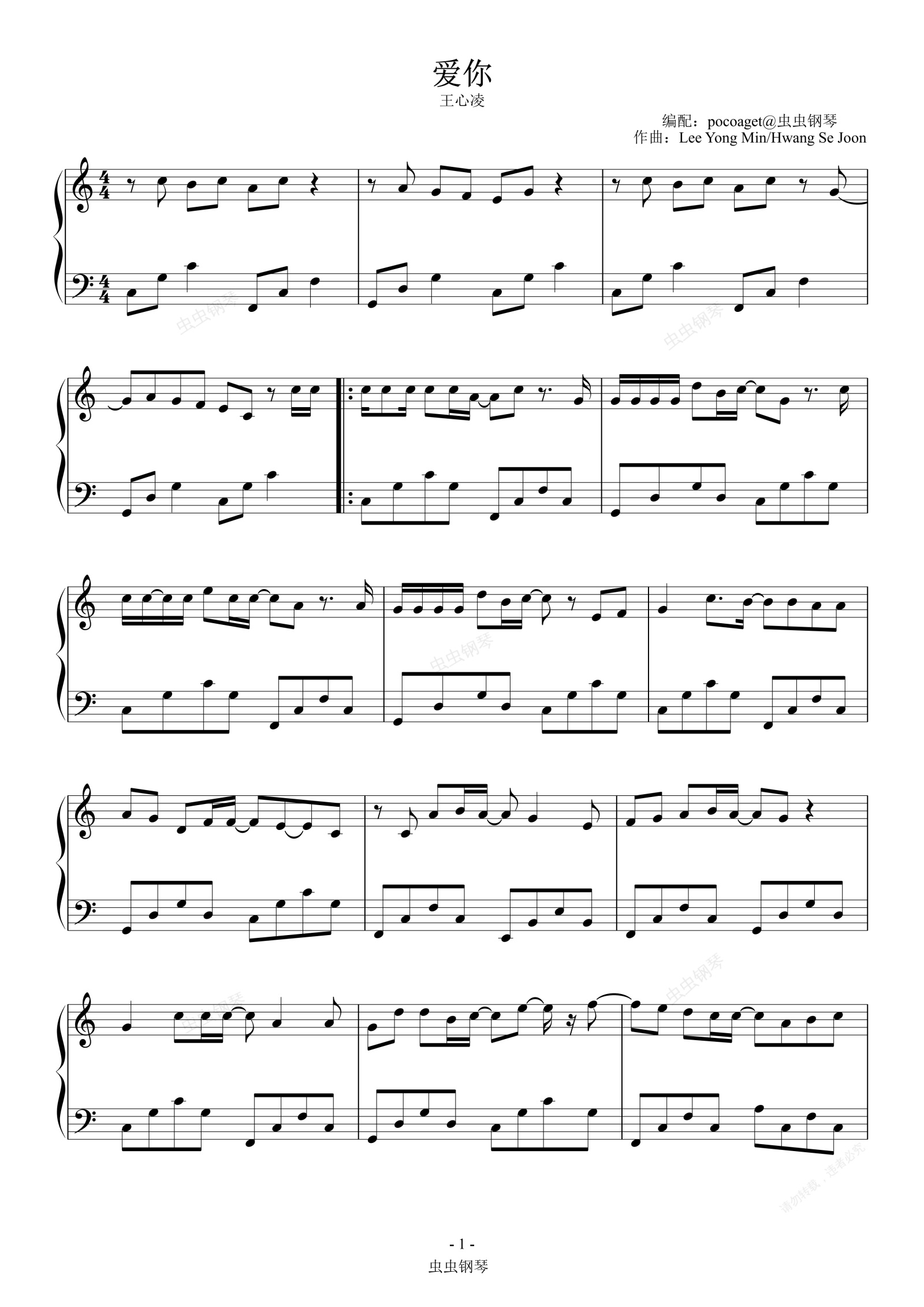 钢琴谱:《爱你》无升降初学者版本(poc编配)