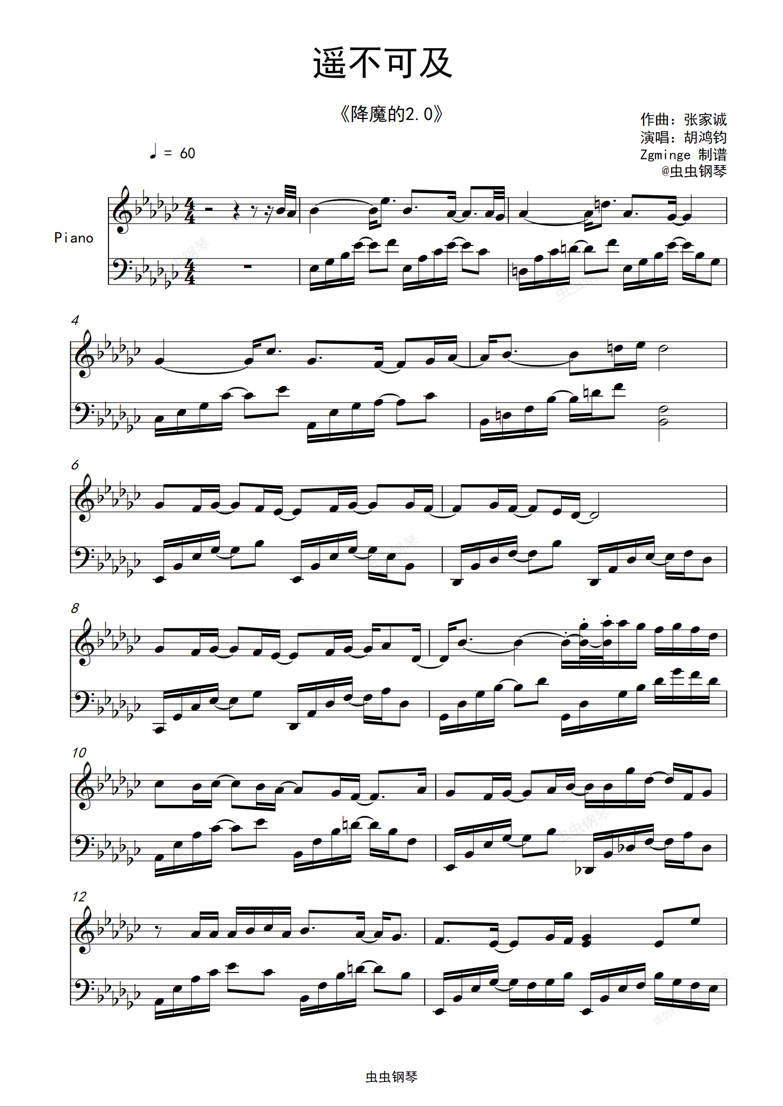 钢琴谱:遥不可及 《降魔的2.0》插曲