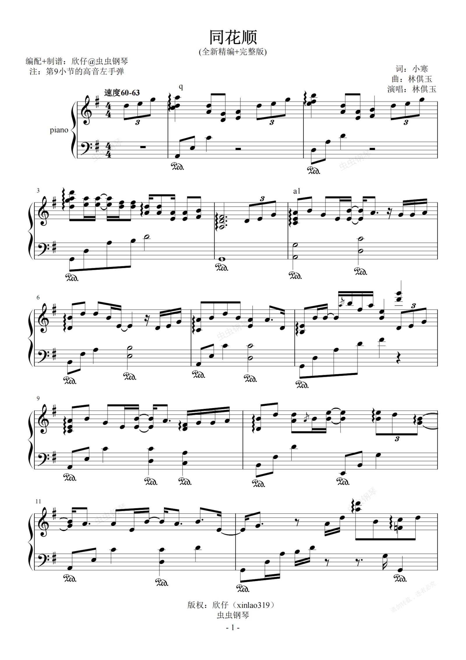 钢琴谱:林倛玉-G《同花顺》(全新精编+完整版)