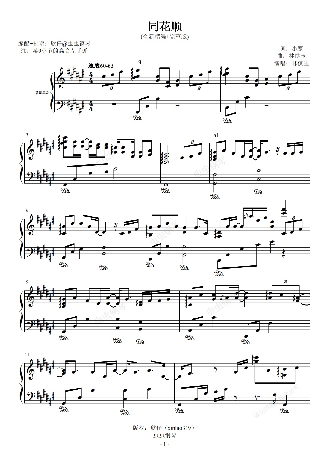 钢琴谱:林倛玉-升F《同花顺》(全新精编+完整版)
