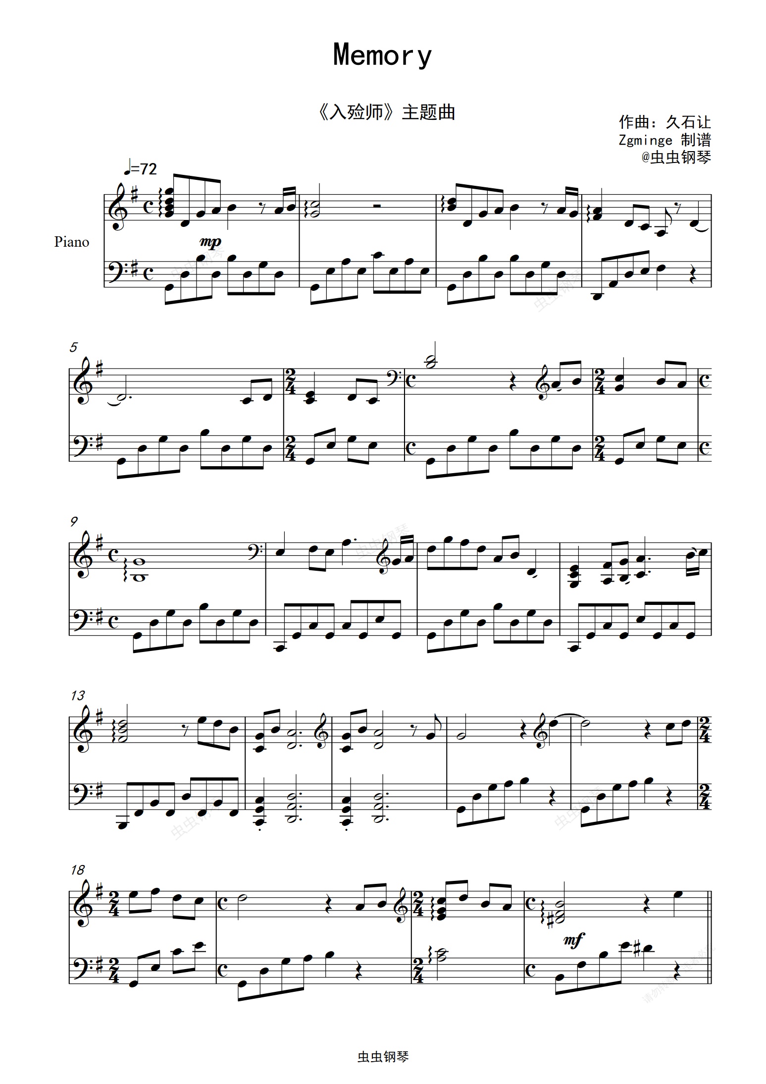钢琴谱:Memory  《入殓师》主题曲