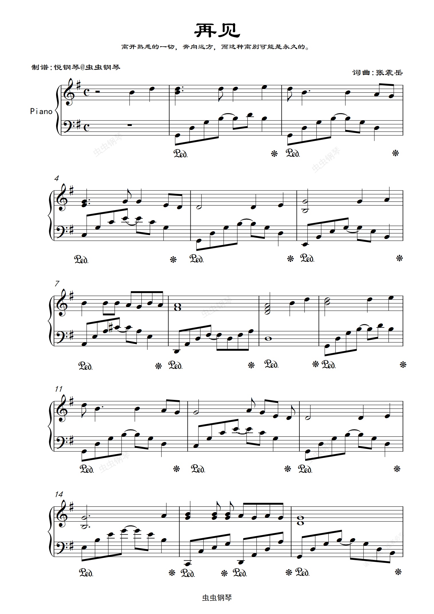 钢琴谱:《再见》毕业季,最后的典礼! 张震岳