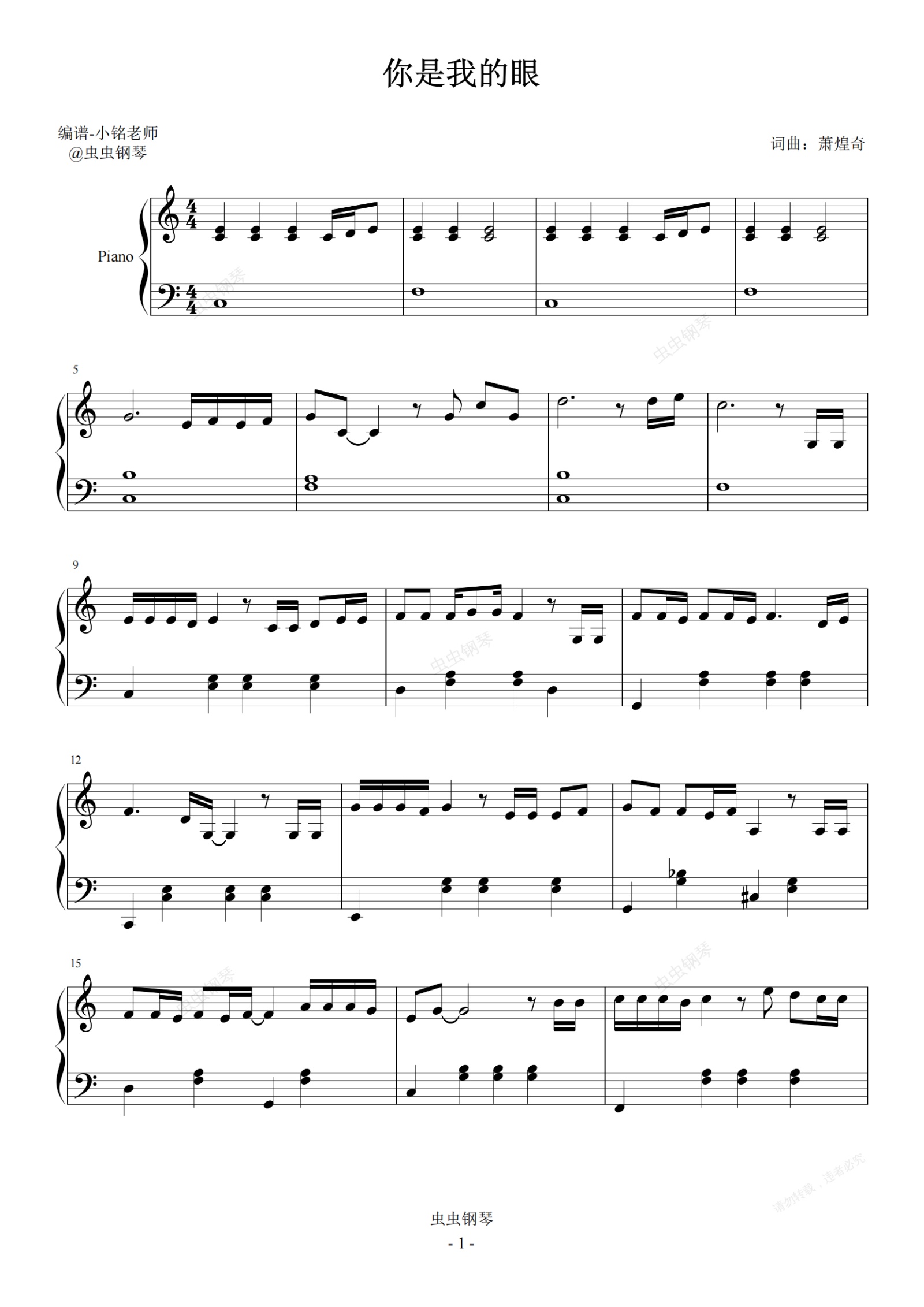 钢琴谱:你是我的眼 【简易 动听】