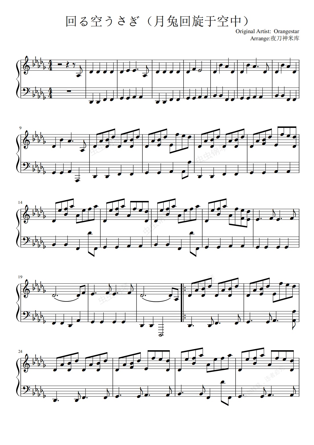 钢琴谱:回る空うさぎ(月兔回旋于空中)