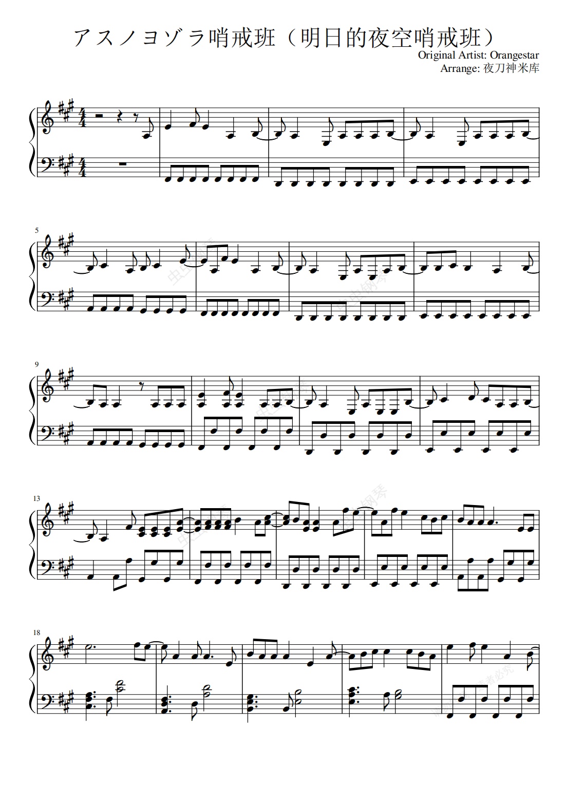 钢琴谱:アスノヨゾラ哨戒班(明日的夜空哨戒班)