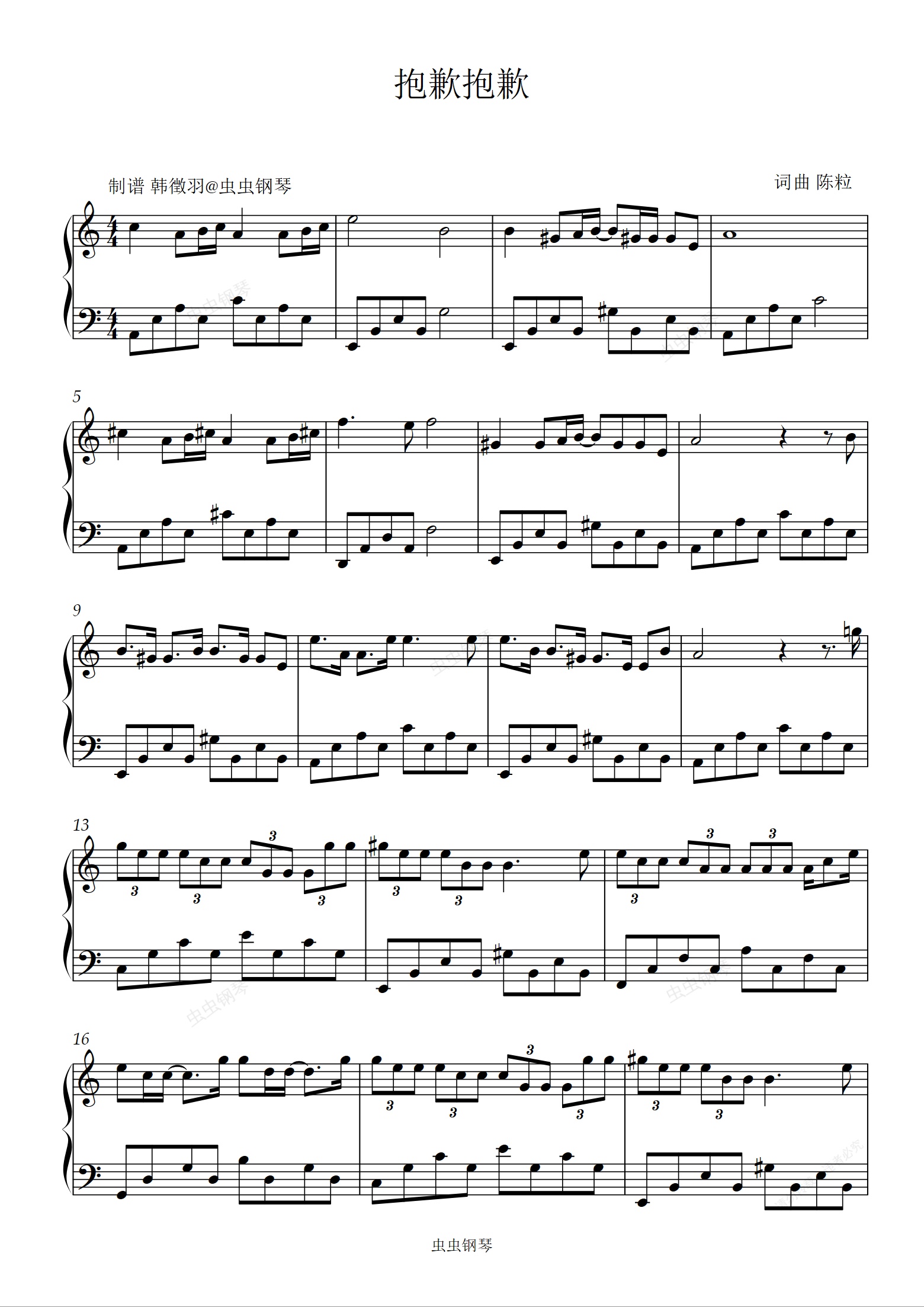 您的位置: 首页 > 钢琴谱库 > 抱歉抱歉钢琴谱-陈粒