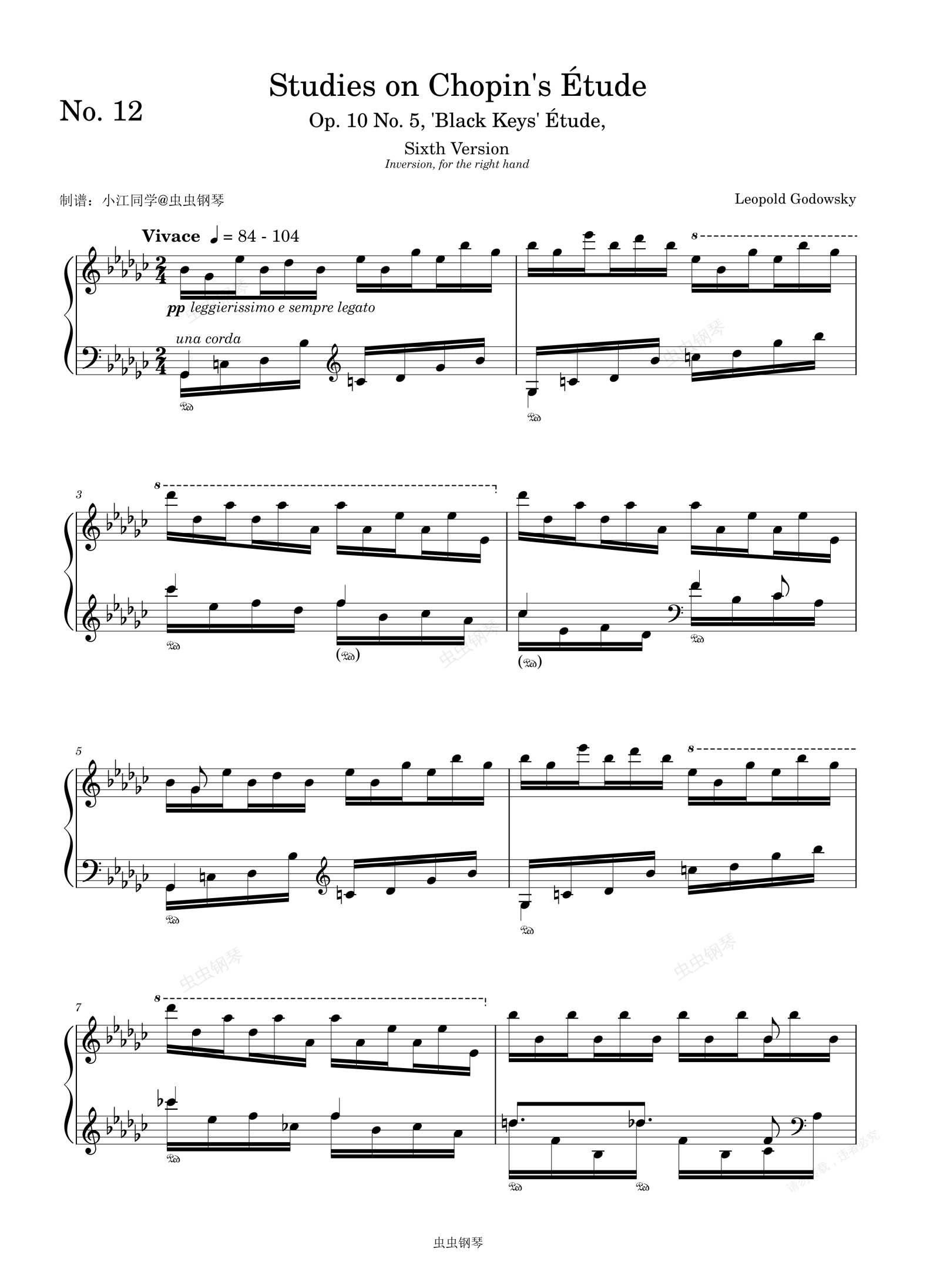 钢琴谱:黑键练习曲 戈多夫斯基改编 第六版本