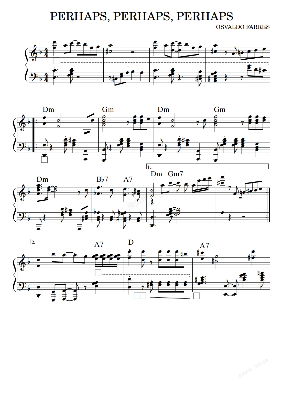 钢琴谱:Perhaps Perhaps Perhaps-Doris Day