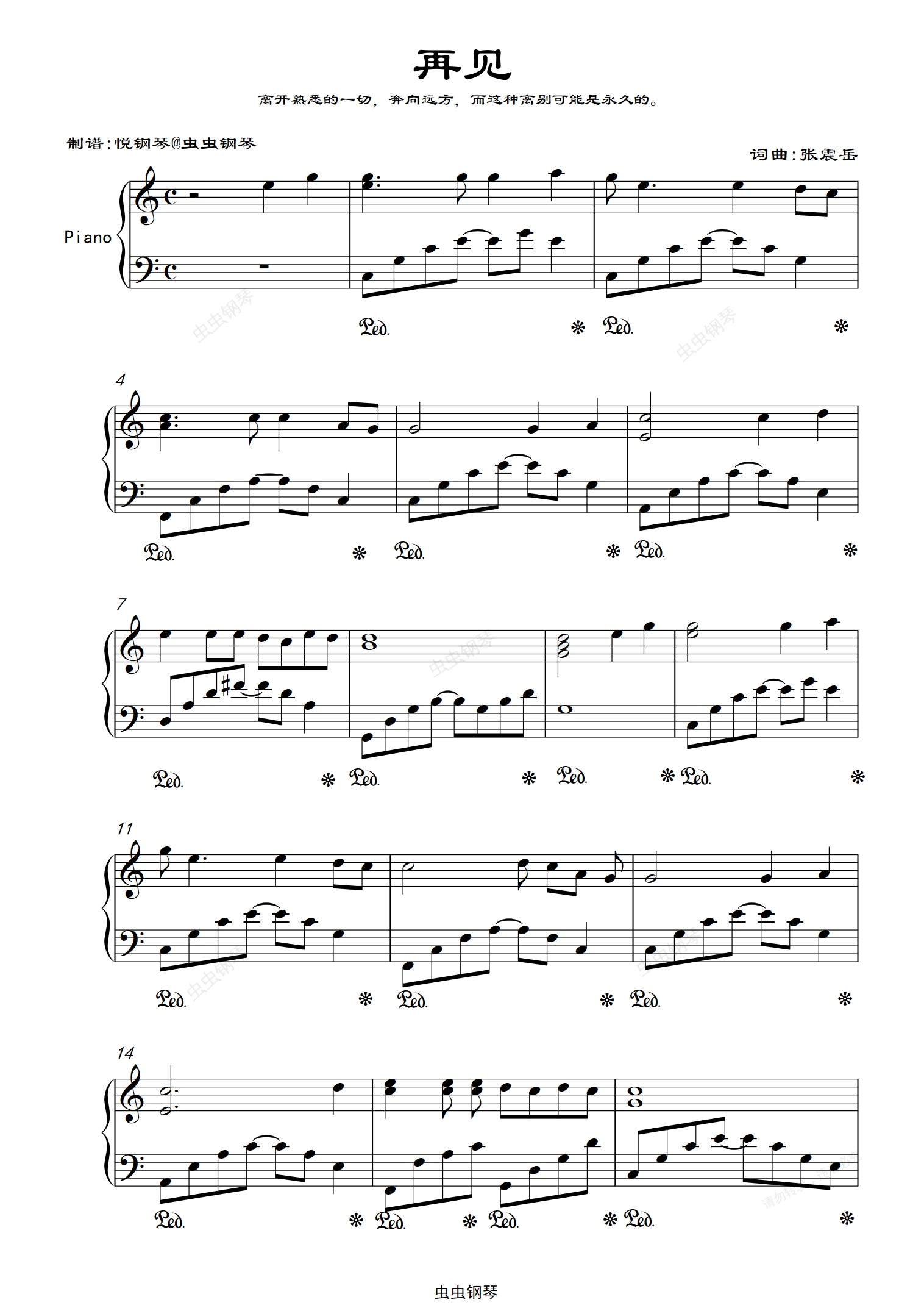 钢琴谱:毕业季歌曲《再见》(C调抒情版)张震岳