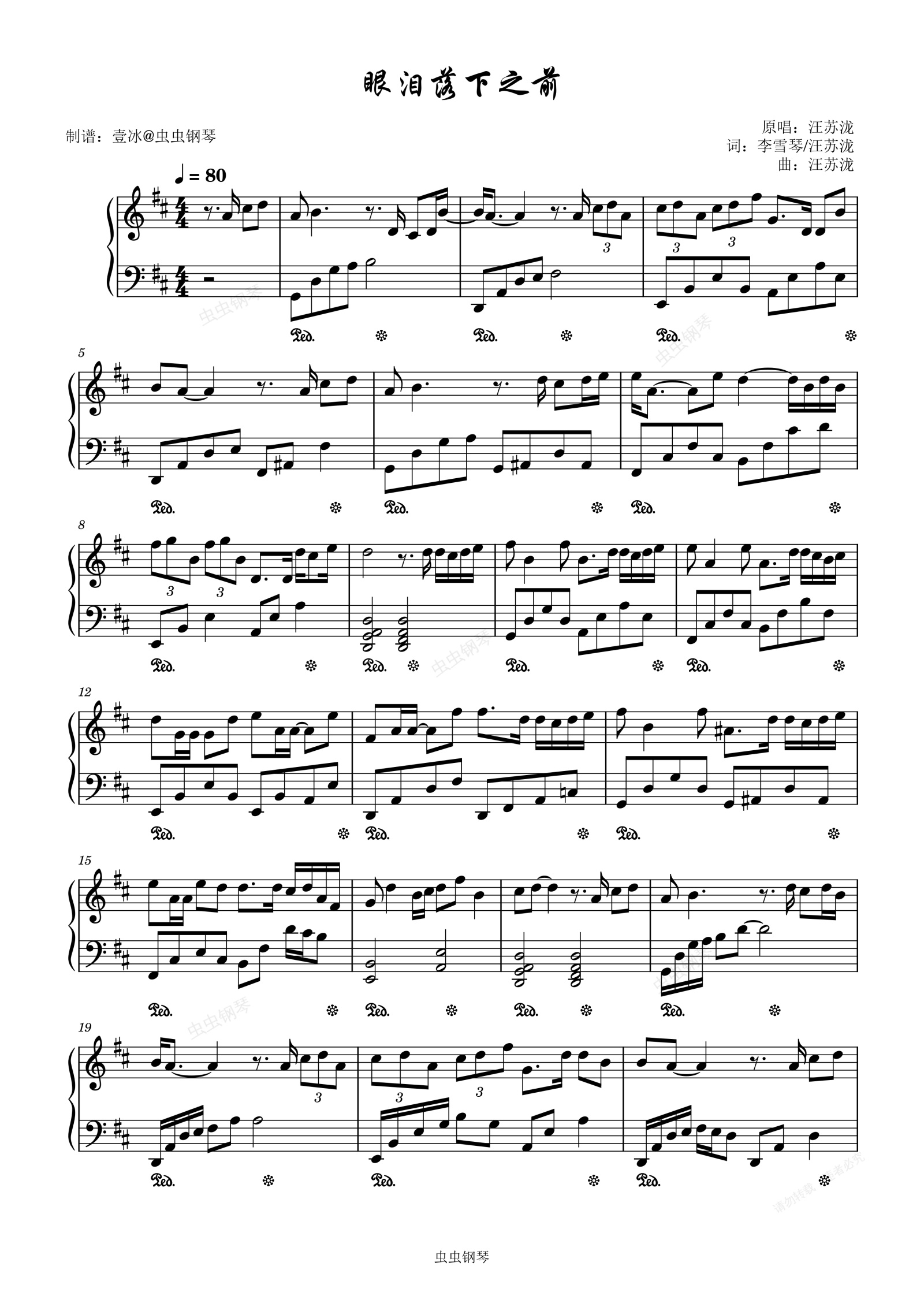 钢琴谱:眼泪落下之前//《暗恋·橘生淮南》电影插曲-原调