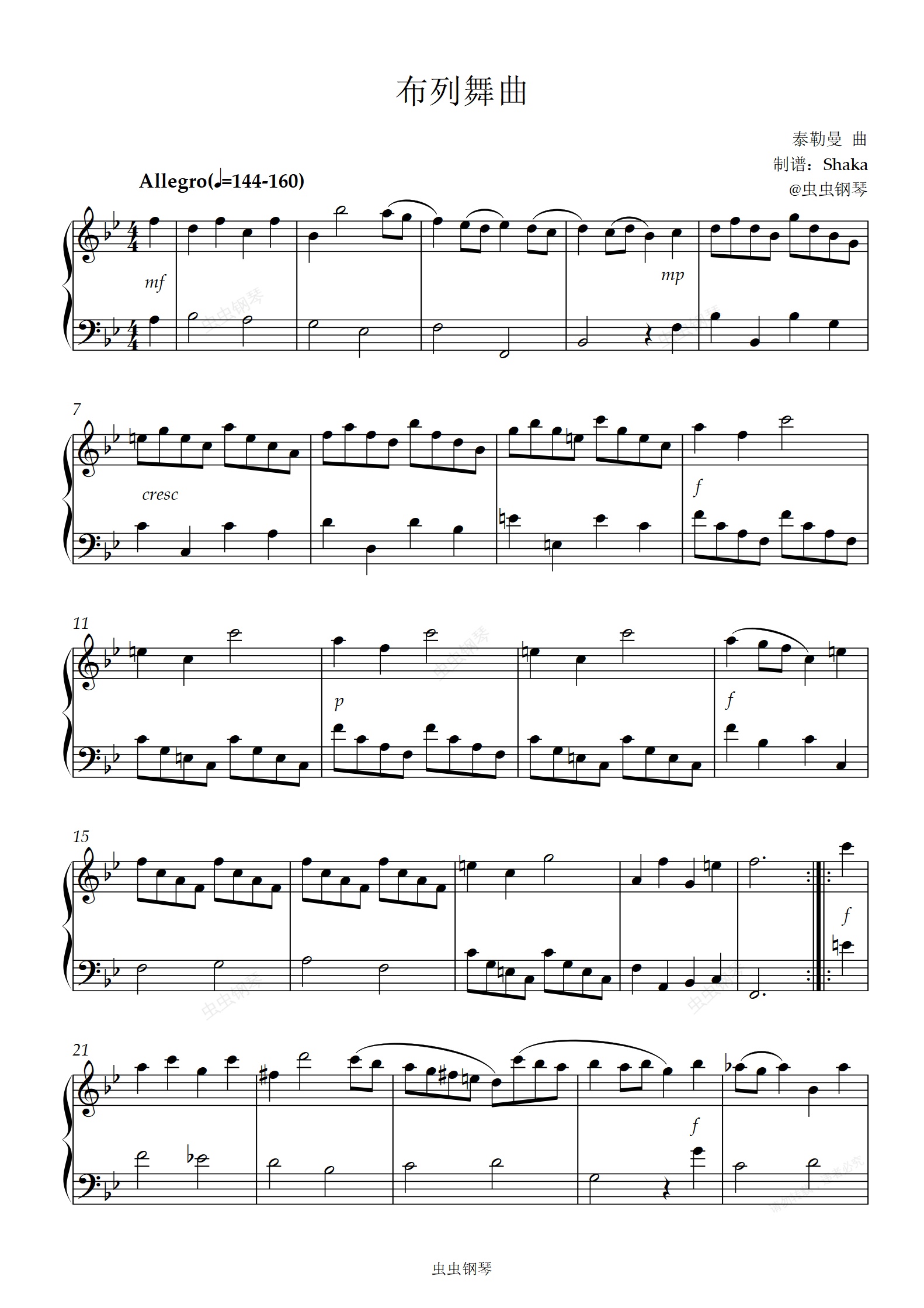 钢琴谱:布列舞曲 降B调唯美版 中国音乐学院6级考级曲目