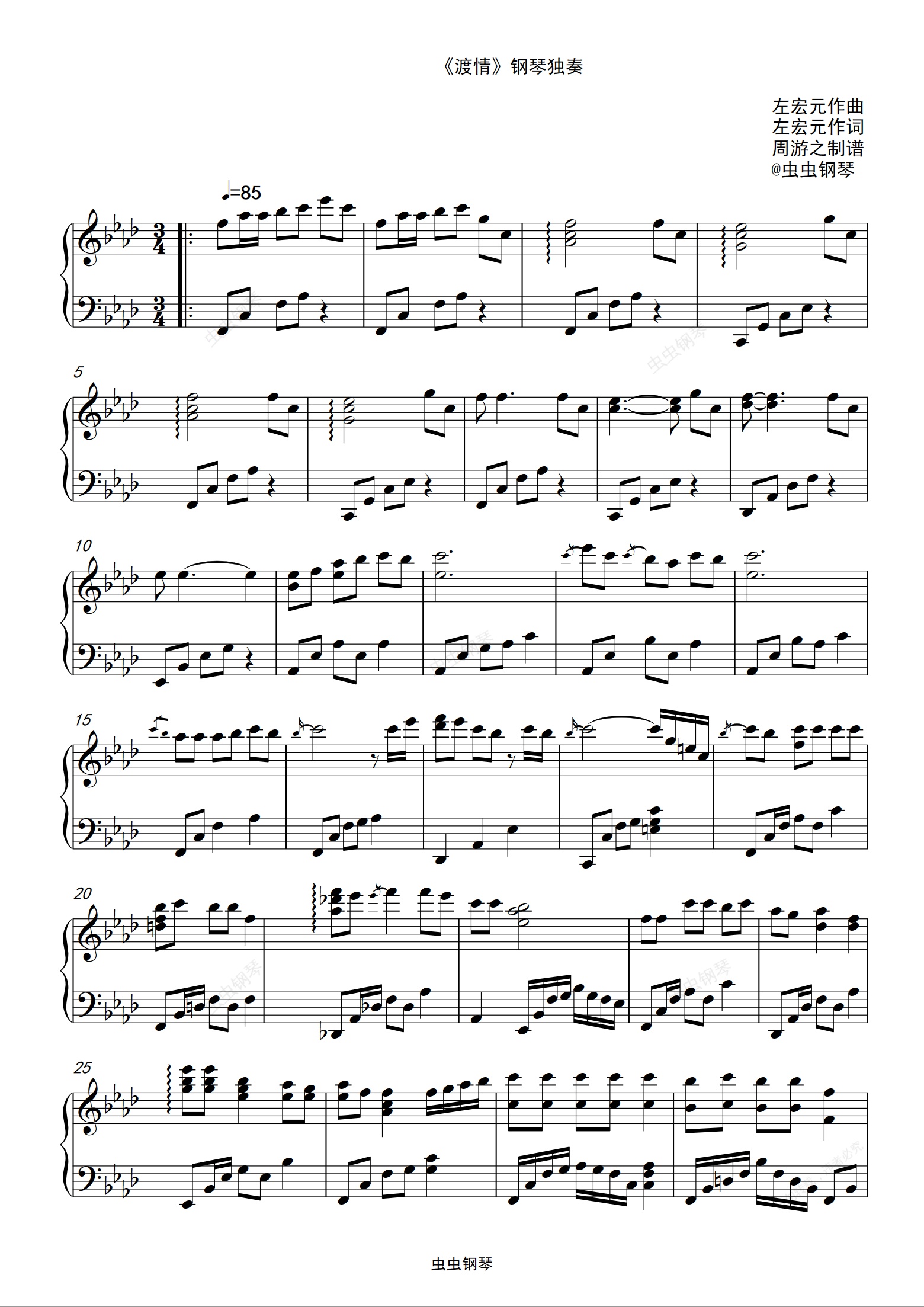 钢琴谱:《渡情》bA调版