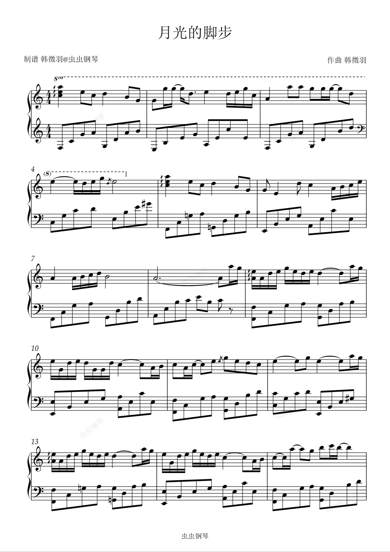 钢琴谱:徴羽原创钢琴曲《月光的脚步》