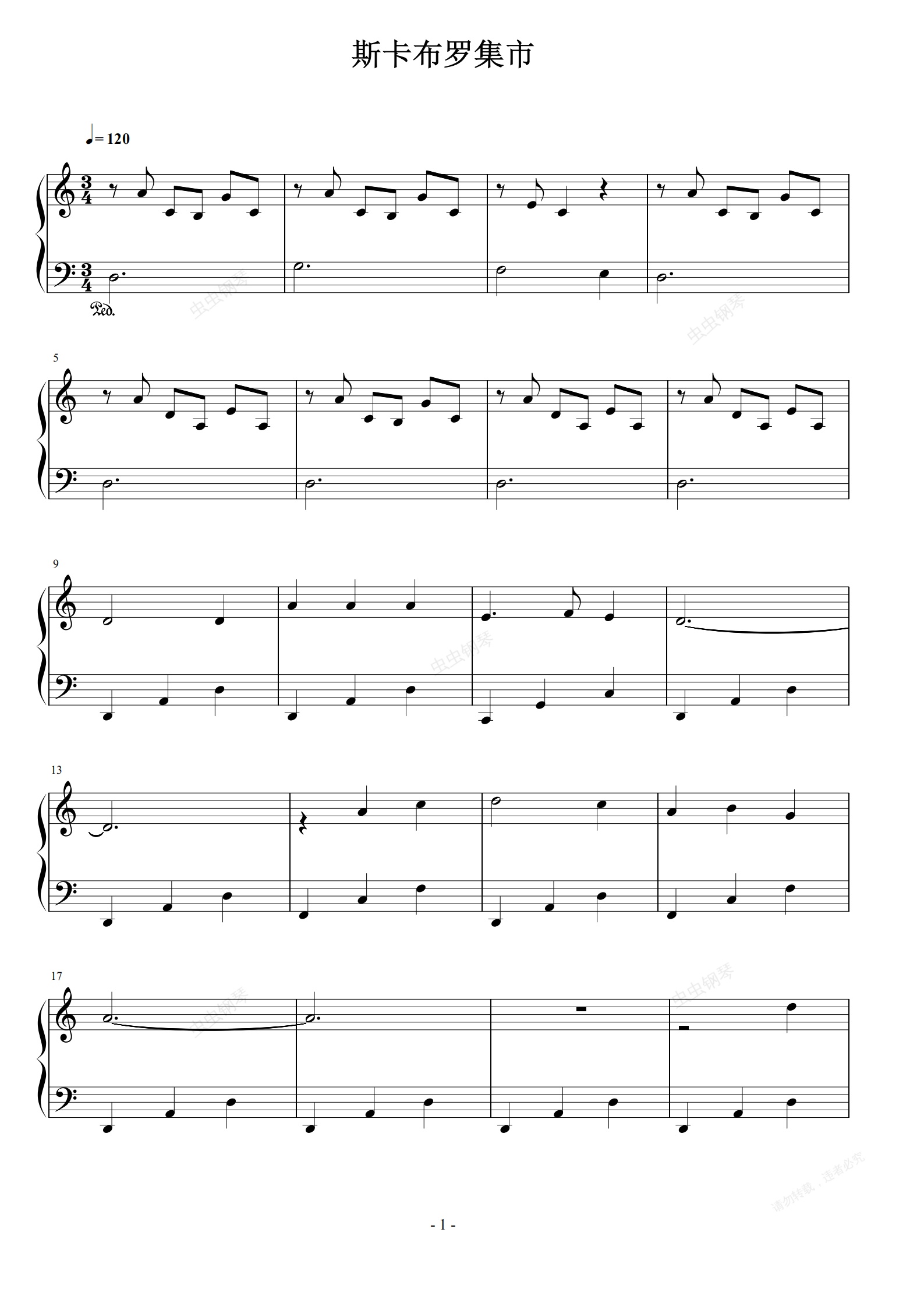 钢琴谱:斯卡布罗集市 Scarborough Fair C调简易版 莎拉布莱曼 《毕业生》电影插曲