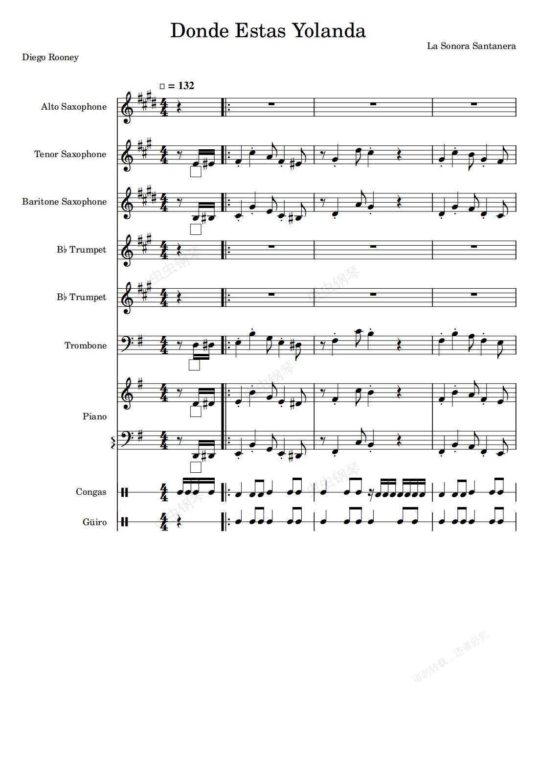 钢琴谱:Donde Estas Yolanda?-Pink martini