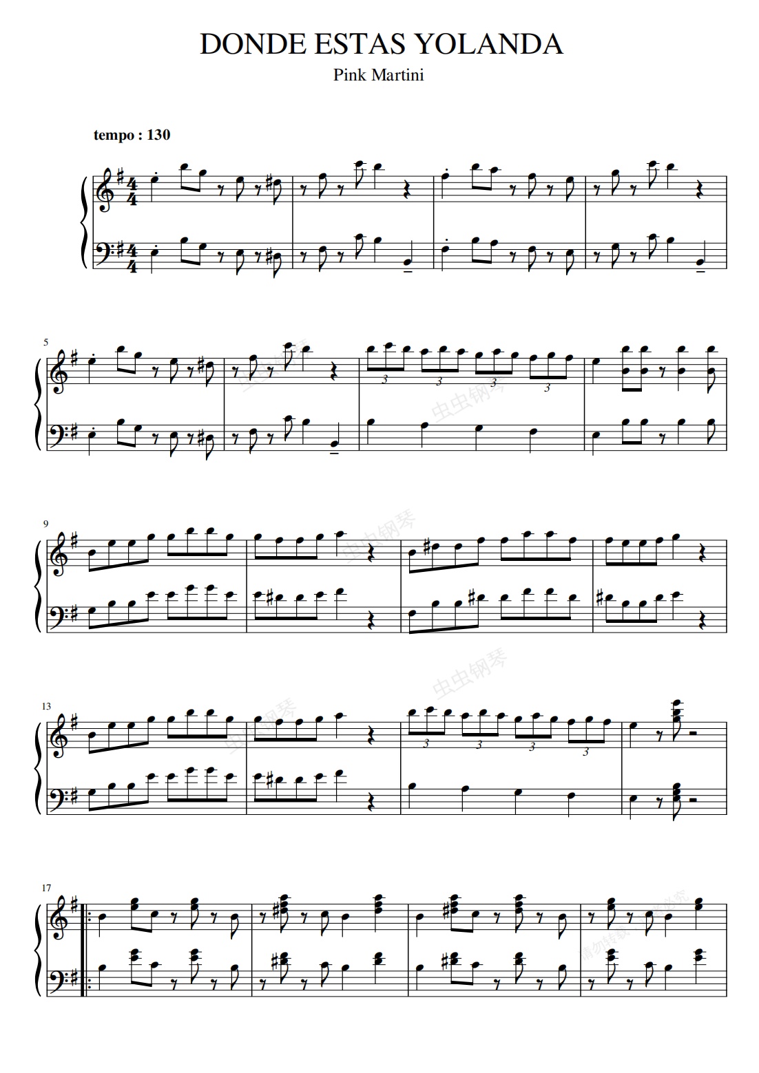 钢琴谱:Donde Estas Yolanda?-Pink martini