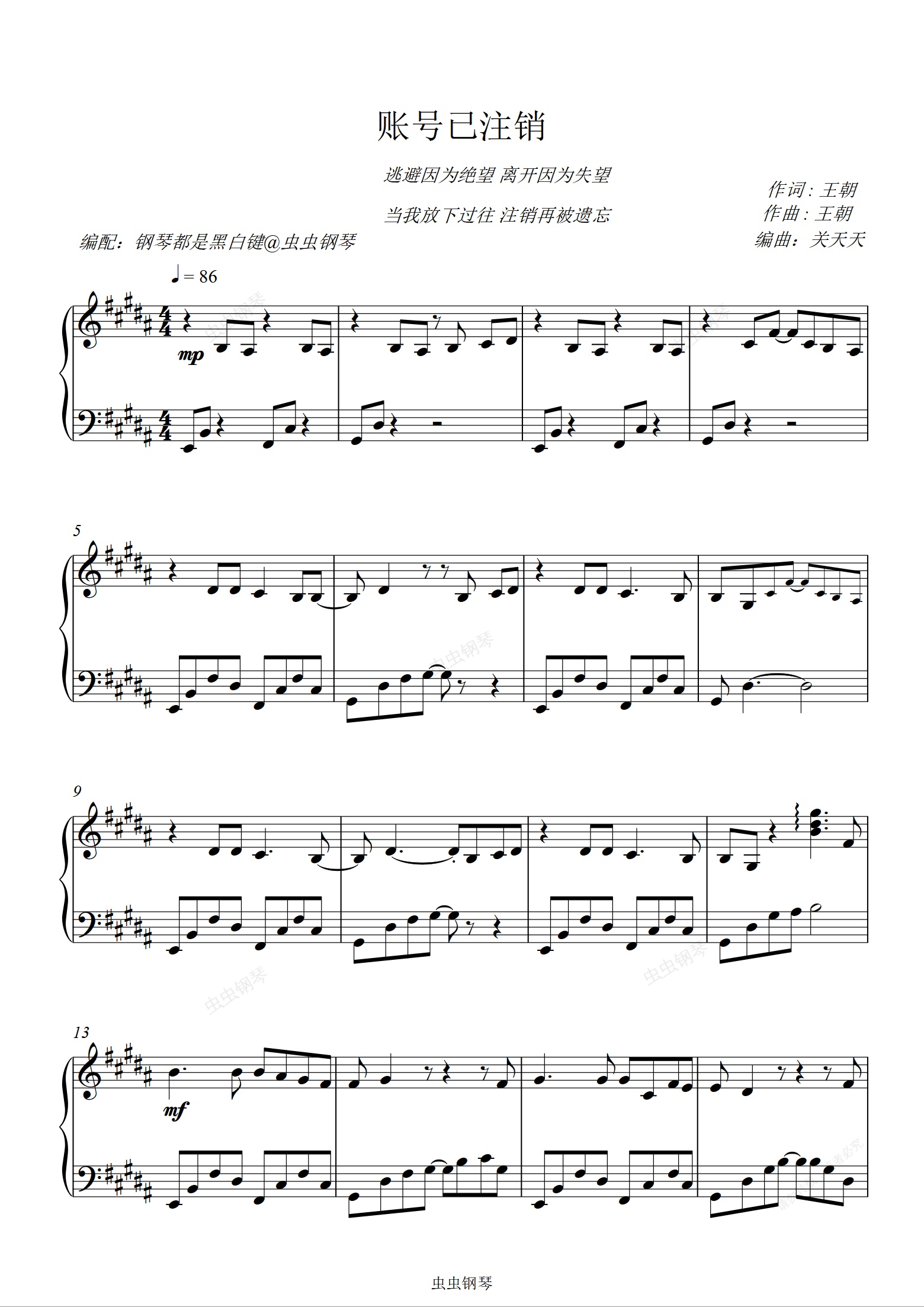 钢琴谱:账号已注销 - 太一 【超好听易弹钢琴独奏版】