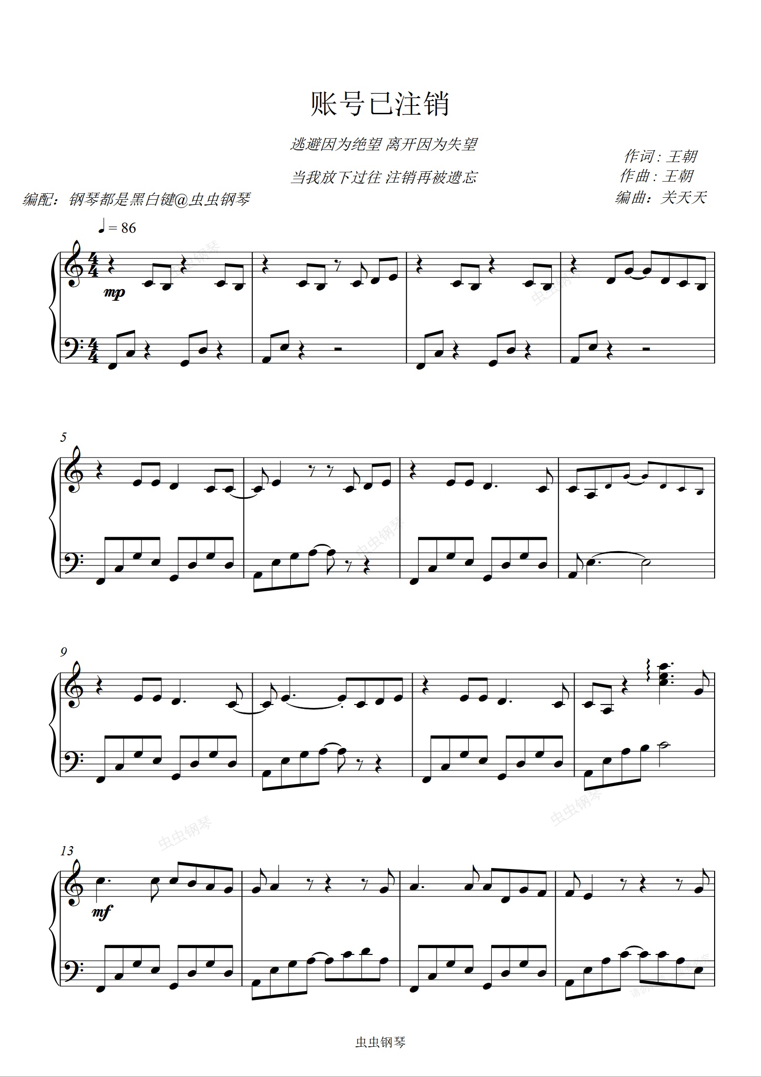 钢琴谱:账号已注销 - 太一 C调【超好听易弹钢琴独奏版】
