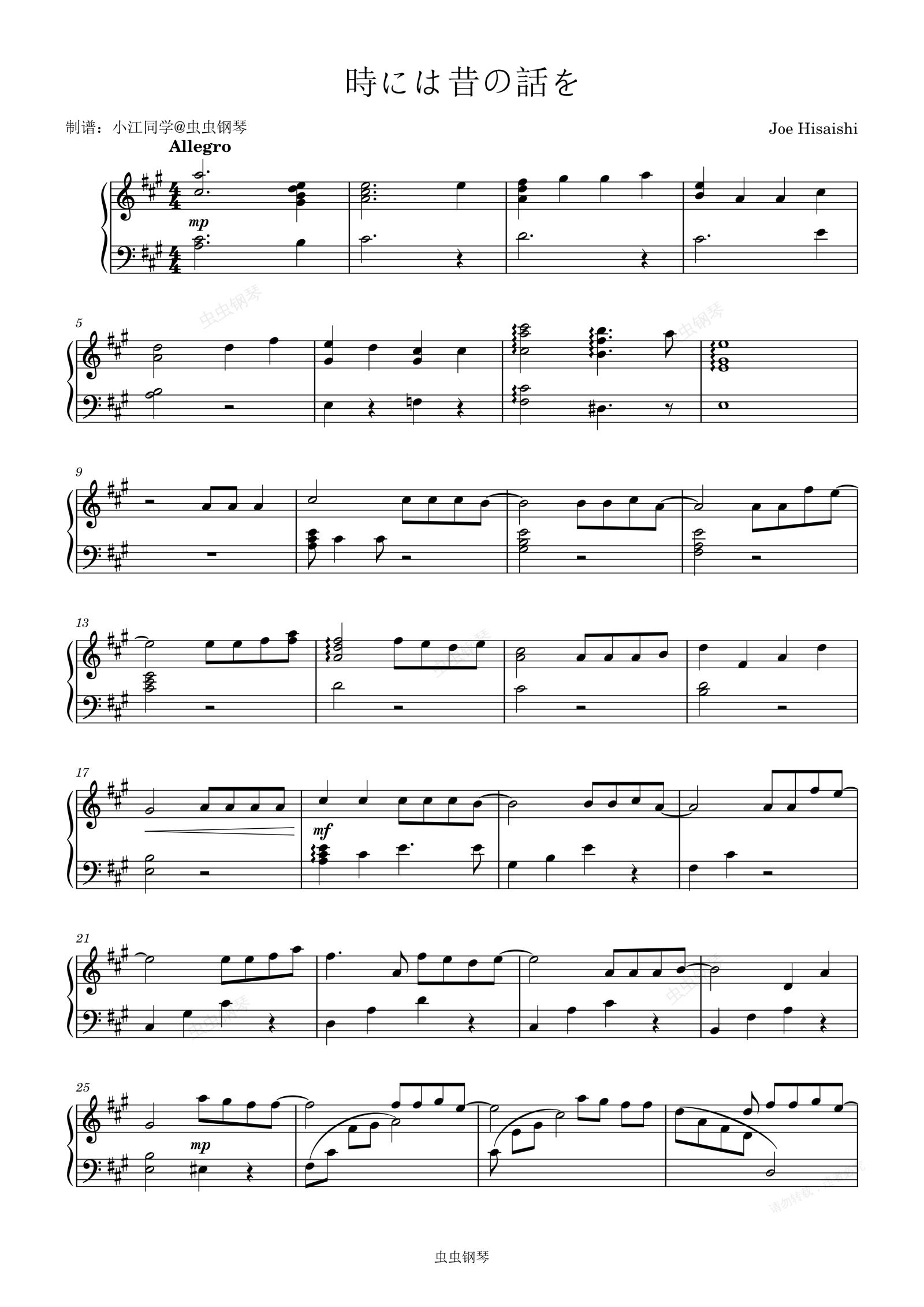 钢琴谱:時には昔の話を 久石让