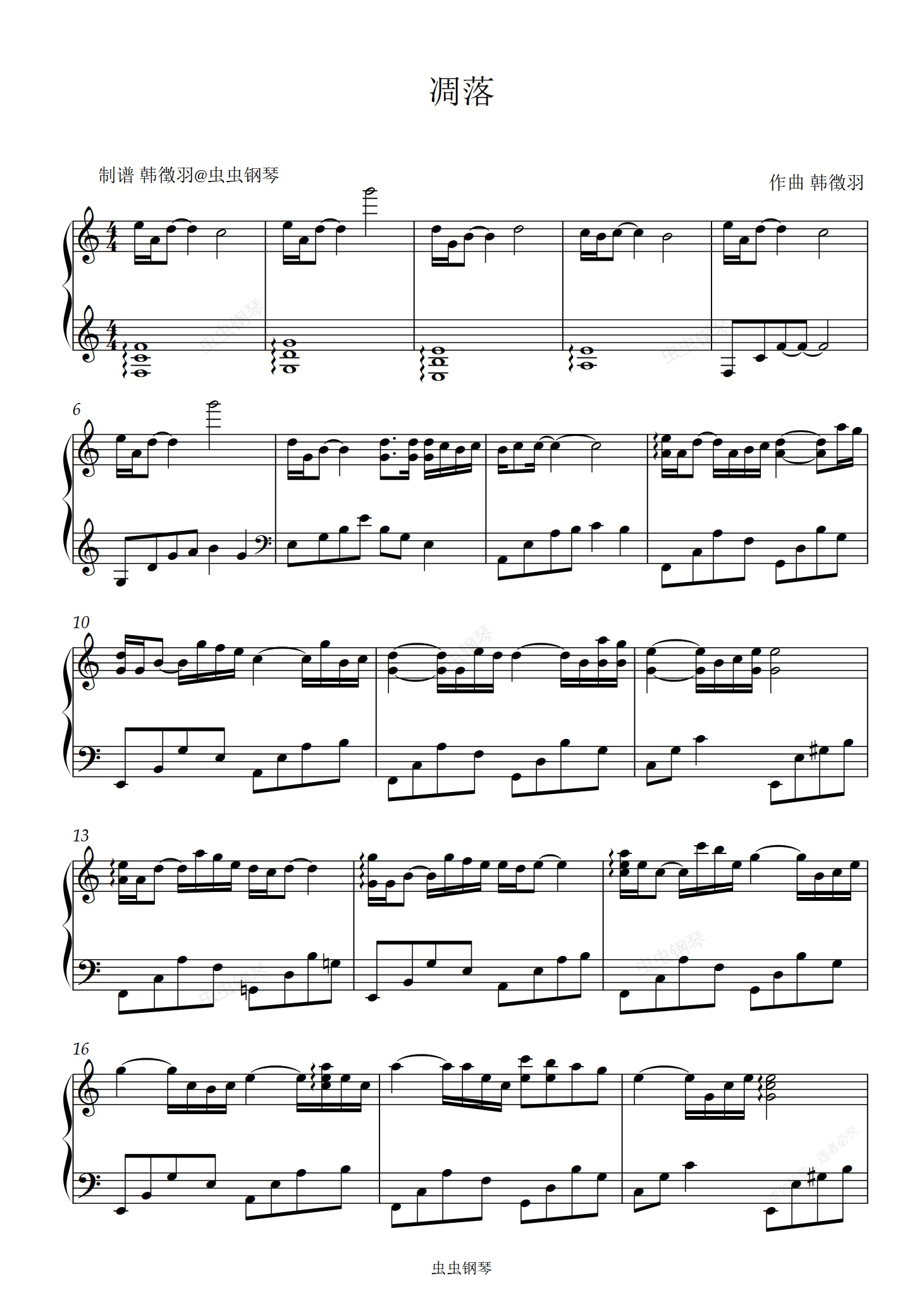 钢琴谱:徴羽原创钢琴曲《凋落》