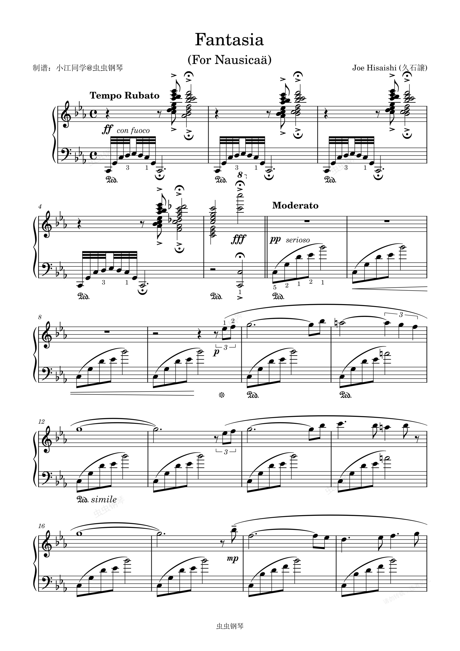 钢琴谱:幻想曲 久石让 (ひさいし じょう)-风之谷 动画电影